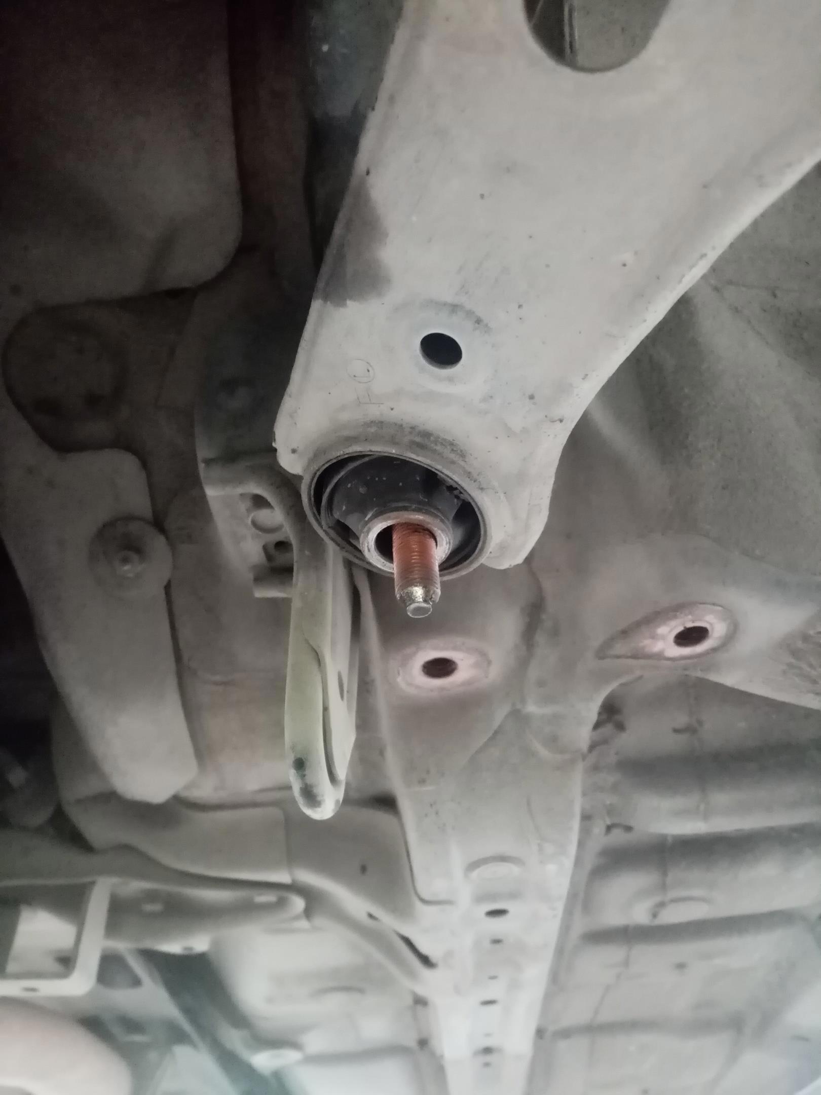 Вот оно! Драный сайлентблок. Обилие медной смазки показывает, что кто-то типа умный тут уже лазил.