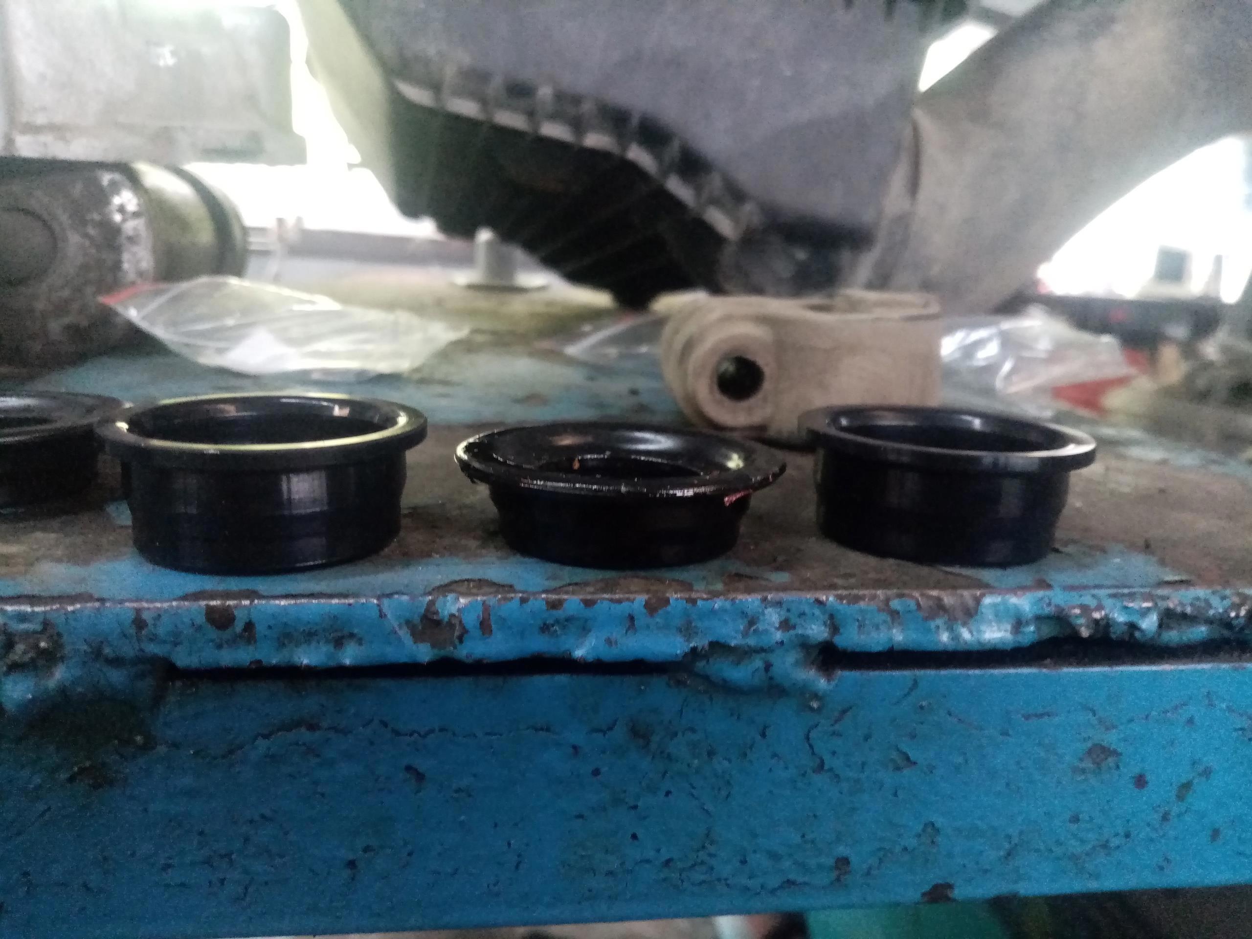 Сайлентблок я заменил. Также требовалось поменять два плавающих сайлента в задних кулаках, где стояли не плавающие. И плавающие туда не влезли. И перебрать передний левый суппорт, меня сразу озадачило, что хозяин авто принёс два ремкоплекта. Я понимаю, что суппорт двухпоршневой, но ремкомплект идёт сразу на весь суппорт, а не на каждый поршень. Естественно ремкиты были не те. Протрахавшись весь день отправил это ведро в светлый путь. Владелец заказал нормальный ремкомплект и решил проточить плавающие сайленты, чтоб их засунуть. Грядёт дубль два с этим ведром.