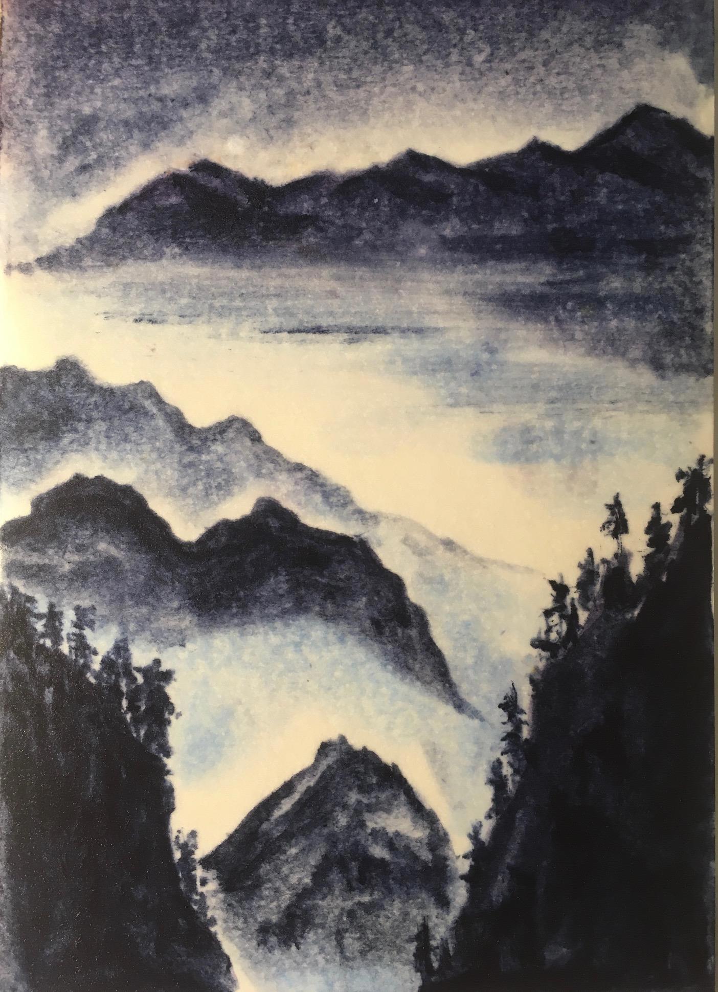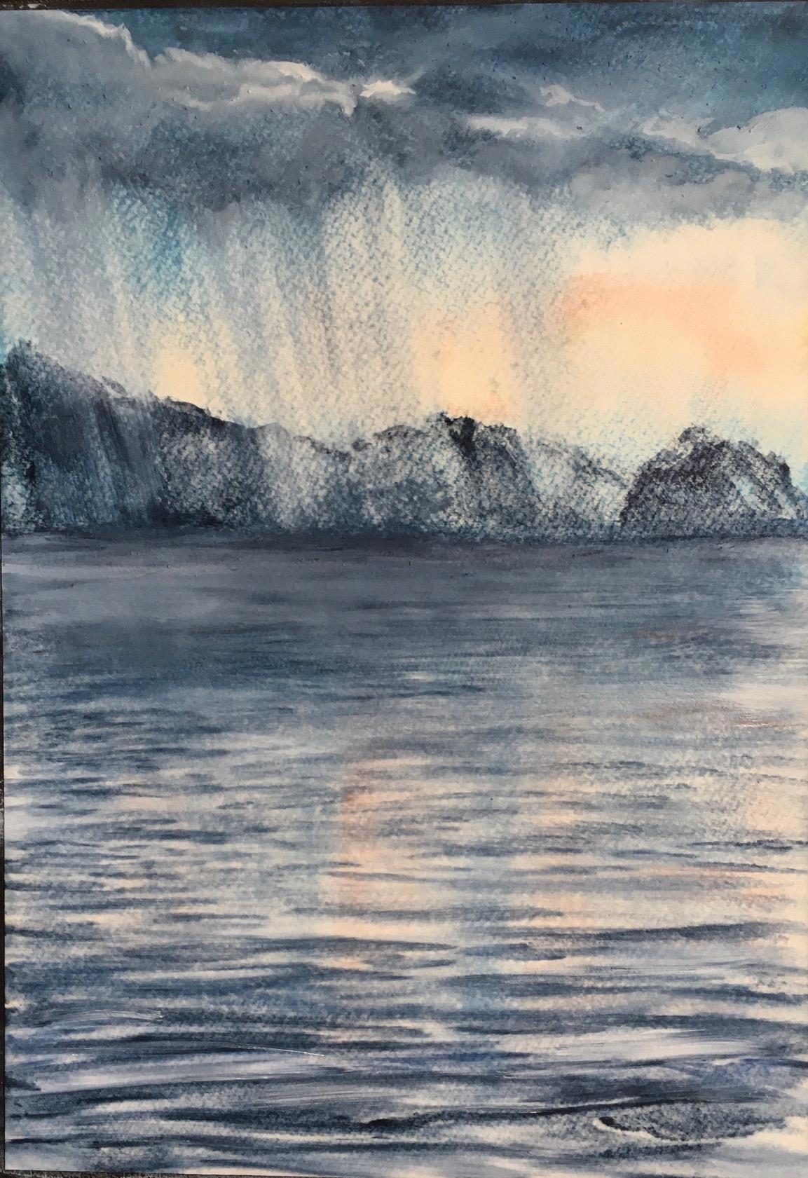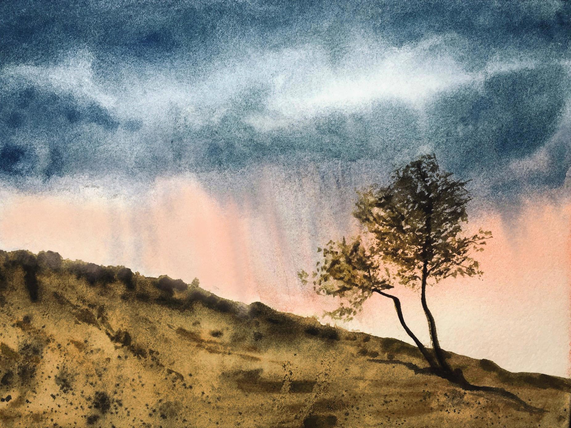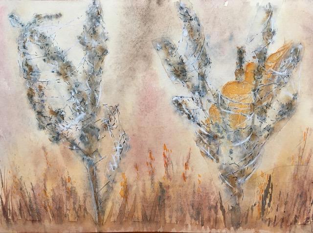 Продолжу вертикальненькими... По мастер-классу тут только четвертая (жестковато вышло, но светится), остальное с фотореференсов, желтеющие листья березки с улицы на моем перекрестке, закат, окрасивший туман в лесу в цвет пожара - своя фантазия.