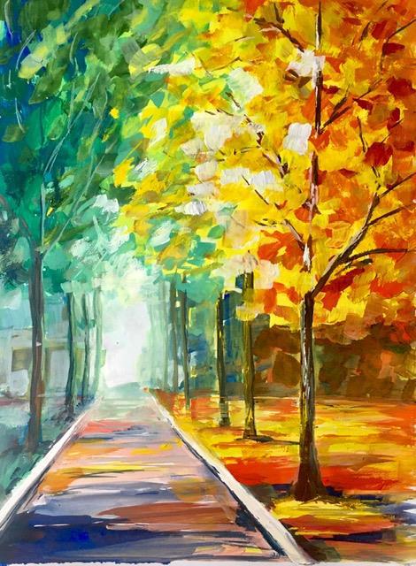 Всегда любила осень, особенно золотую, конечно. Ну и с нее, можно сказать, начала рисовать - во время карантина по ковиду, когда улицы города были пусты и времени было... Нормально было времени. Осенняя аллея - тем, конечно, банальная, но, черт побери, это красиво. И меня это трогает...
