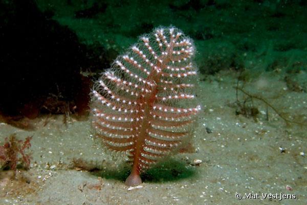 Морские перья, способные к люминесценции, отвечают вспышкой света на прикосновение.