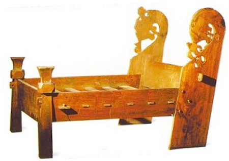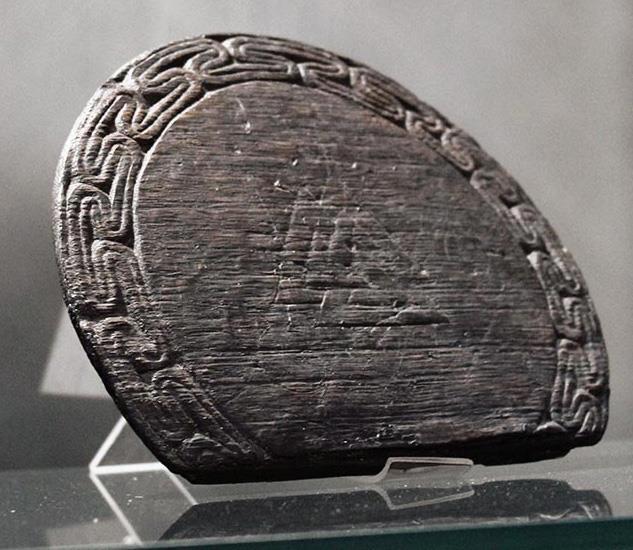Усебергская ладья — валькнут на столбике кровати и на деревянном блюде (но не на самом корабле).