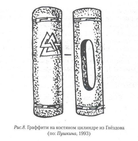 Костяной цилиндр с изображением валькнута из археологического комплекса Гнездово