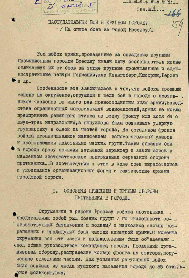 Отчет 6А 1 УкрФ по уличным боям за г. Бреслау (Вроцлав)