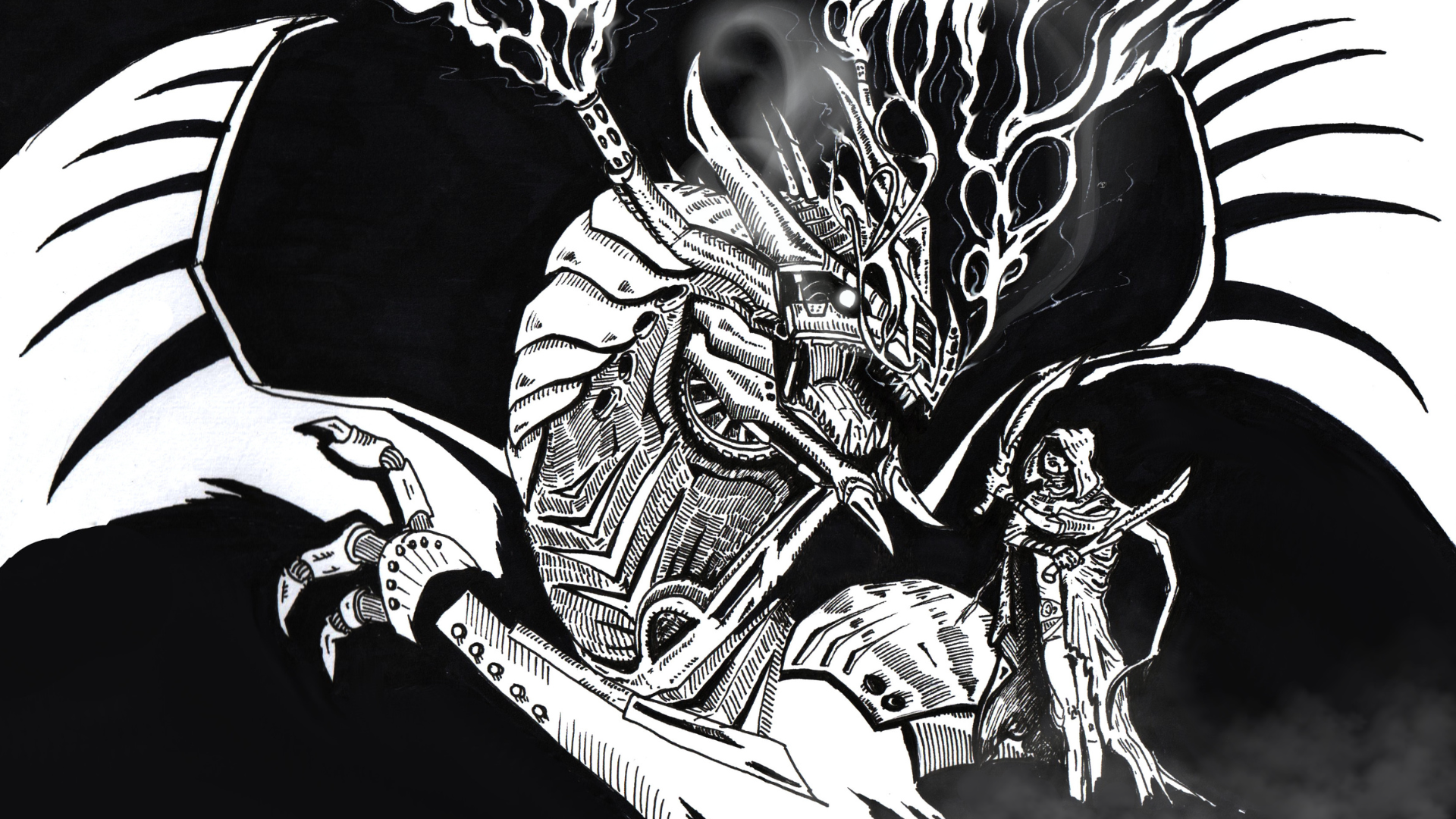 Над чем задумался Король? Какие силы готов отправить против всё ещё живого противника? Что прячет под рукавами своей накидки, напоминающей вороньи крылья? Я бы почитал книгу под такой обложкой.