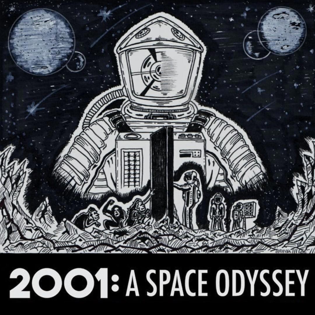 Денис создаёт свои оригинальные работы с помощью маркеров и линеров на чёрных и белых листах. Из представленных два арта созданы специально для этого канала: афиша для фильма "Космическая одиссея-2001" и иллюстрация к роману Майкла Суэнвика "Дочь железного дракона".