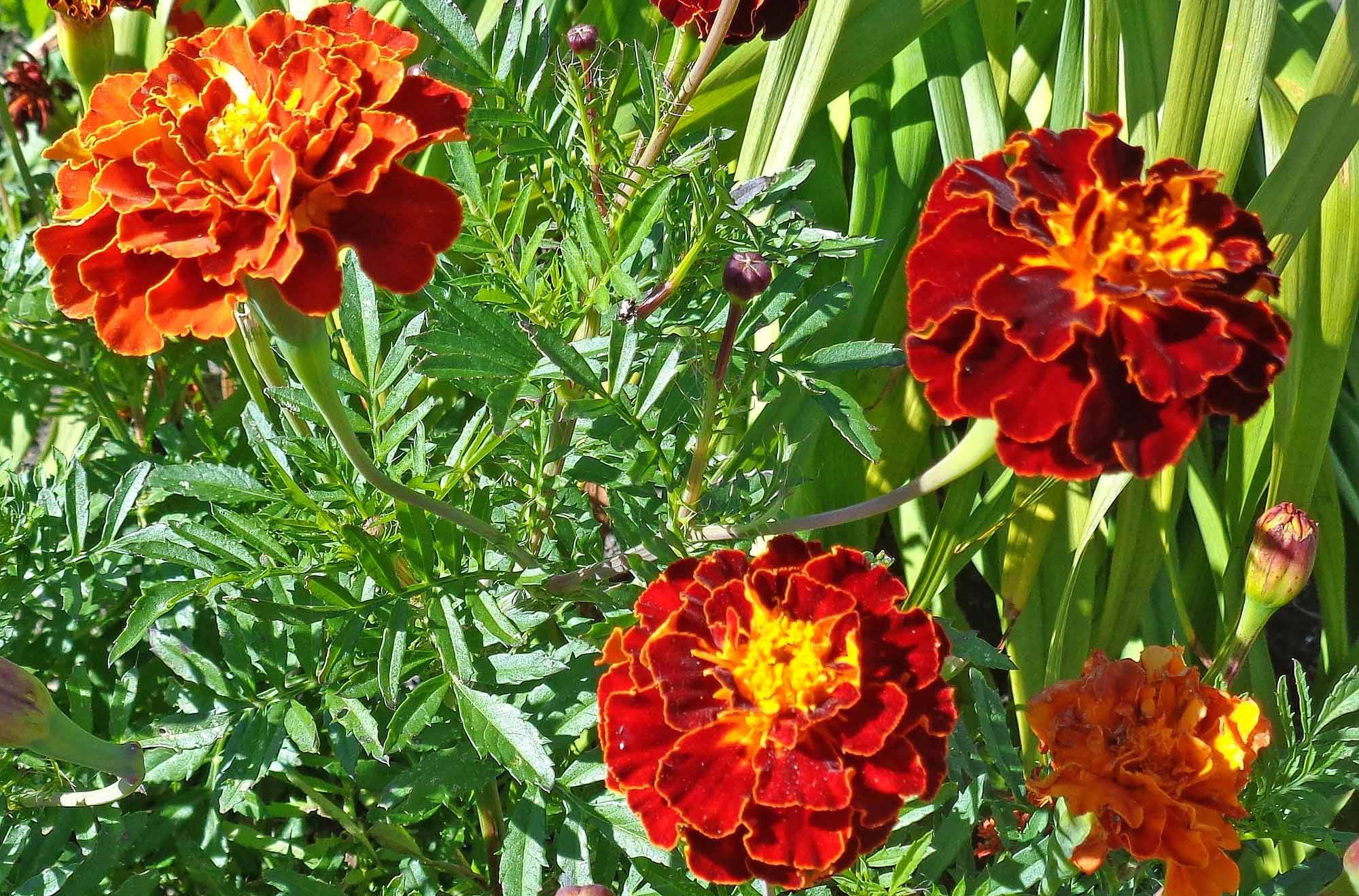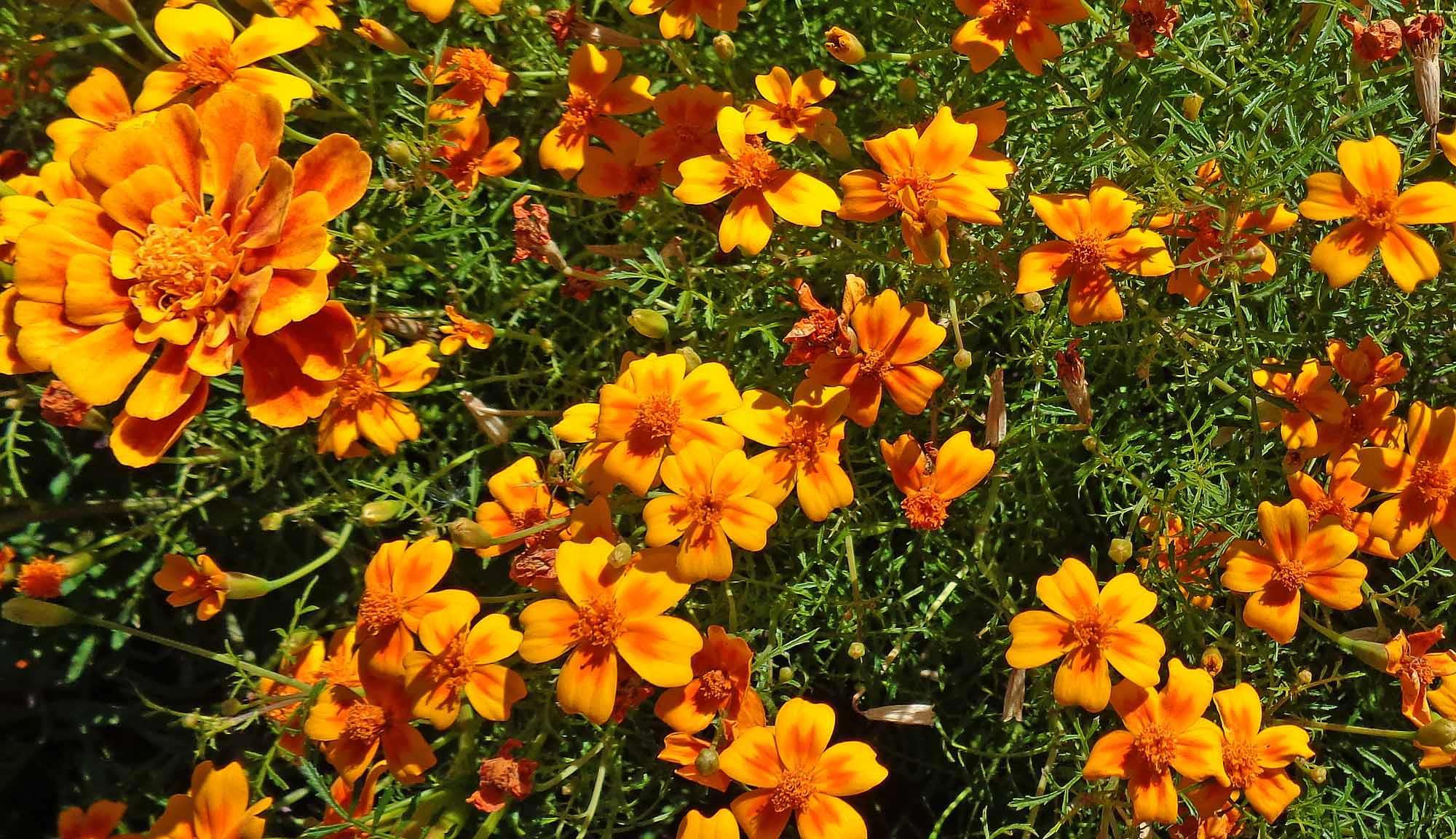 Пора бархатцев. Они всё лето цвели, но терялись среди множества других цветов. А сейчас, когда большинство уже завяло, отыгрываются, показывая себя: