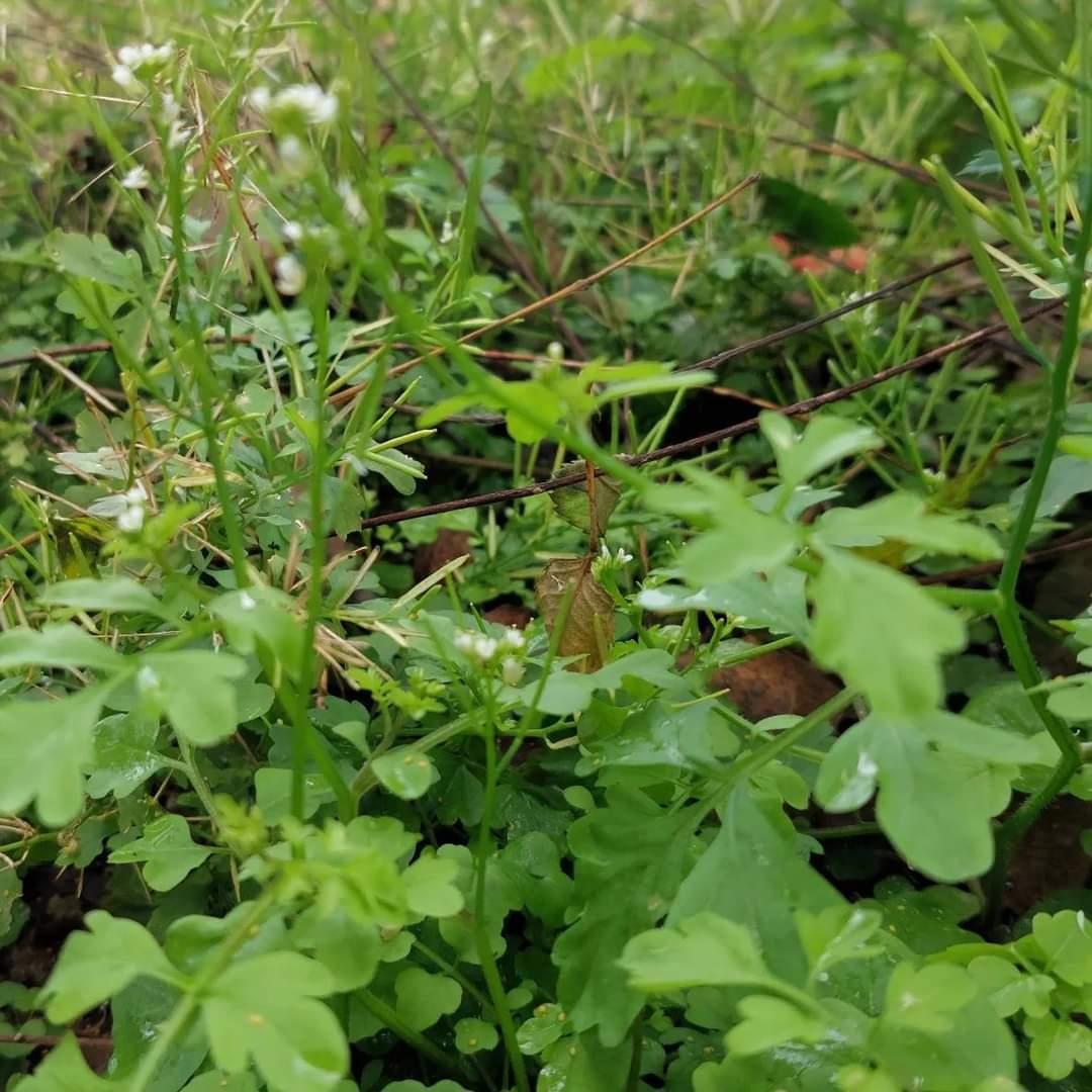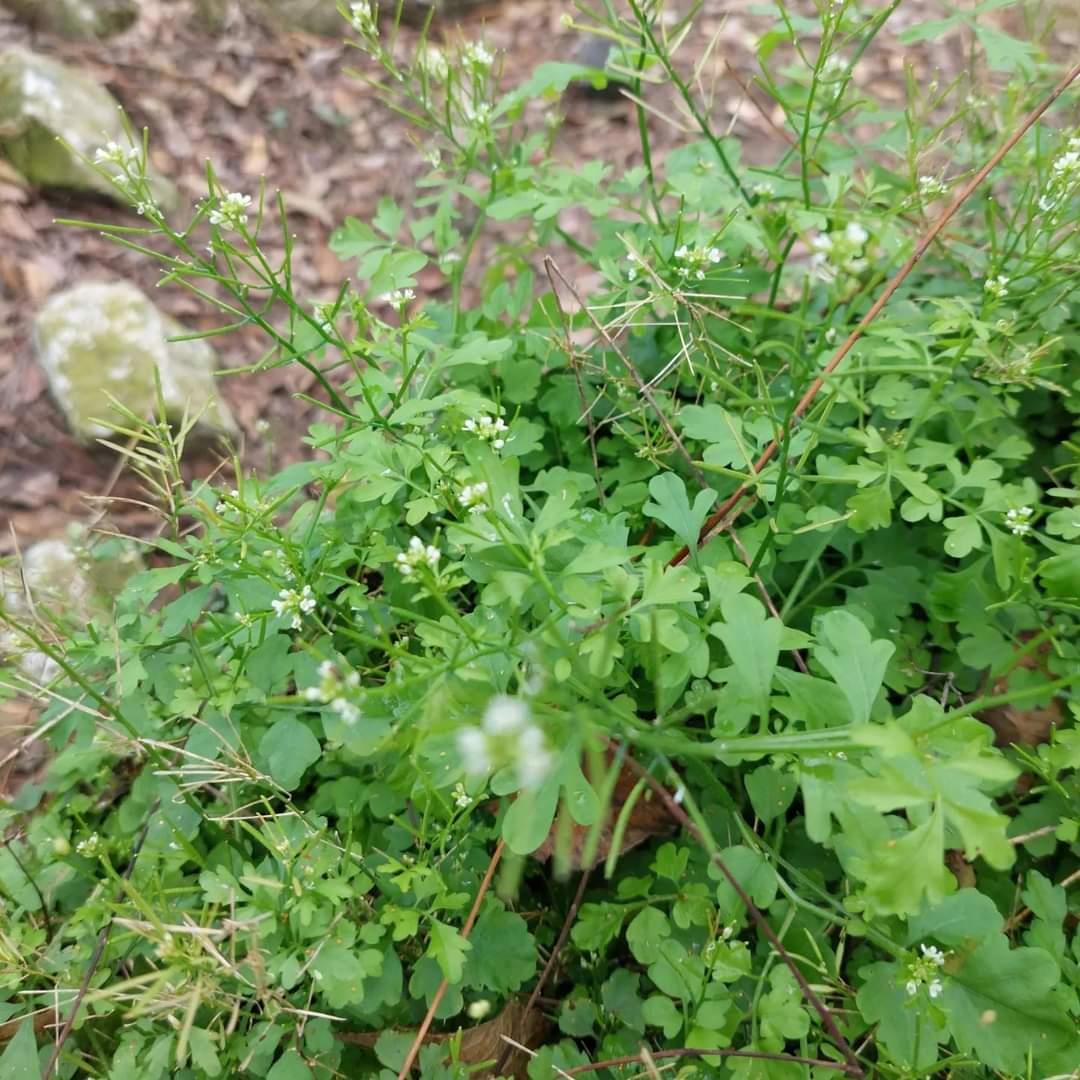 Вот такое вот само выросло. Никто не сажал. У такого вот запах и привкус хрена, но легкий. И таки это не хрен. Цветет беленькими цветочками.