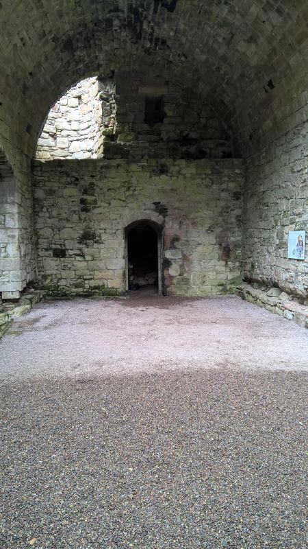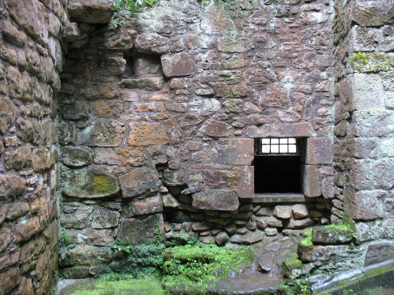 В кухне - огромнейший очаг и раздаточное окно. В подвальном этаже – четыре сводчатые комнаты под кладовые и пятая, возможно – под темницу. А какая добротная там темница! А колодец, упрятанный глубоко в подвал! Крейгнитен невозможно было лишить источника воды в принципе. Дополнительные покои для размещения гостей (а на свадьбу дочери Финнарта в 1536 году король Джеймс прибыл сюда с сотней приближенных, размещенных только в замке… остальные паслись снаружи Крейгнитена) были в башнях и жилых помещениях наружной стены замка. Северо-восточная башня, вероятно, имела свою вискикурню. Большой холл замка имеет врезную каменную скамью в стене и выход на небольшую галерею прямо над входом – для менестрелей. Там, в большом холле, круглый свод потока, и два окна, прорезанные одно над другим (косвенно можно оценить циклопическую толщину стен).
