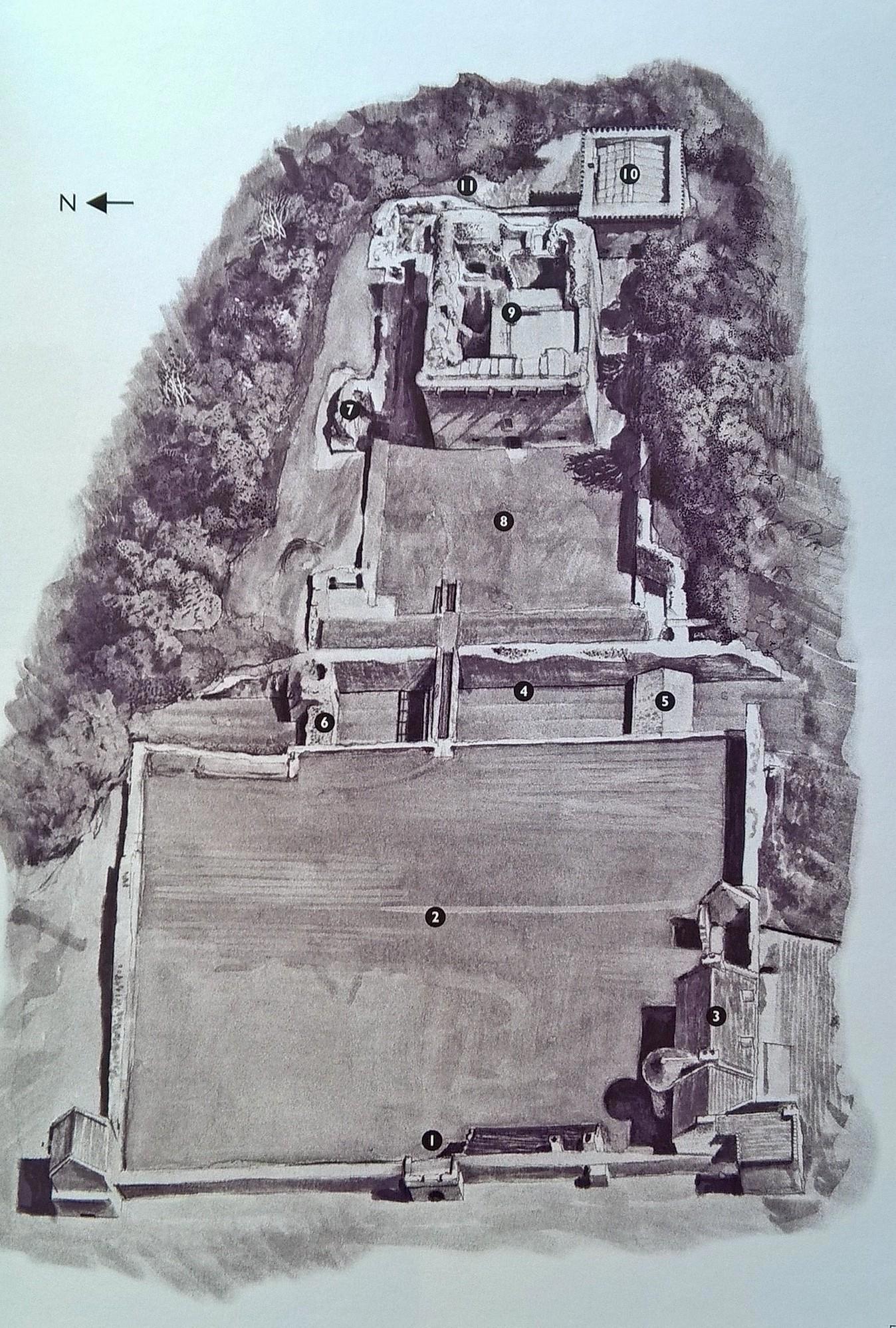 4 - канава и западная парапетная стена, защищающие жилые строения 16 века