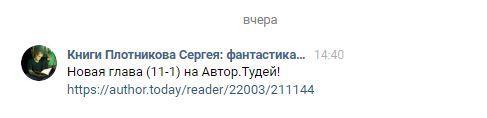 Автор: Плотников СергейОсвоил новую фичу - оповещение о новой главе через Личные сообщения Вконтакте