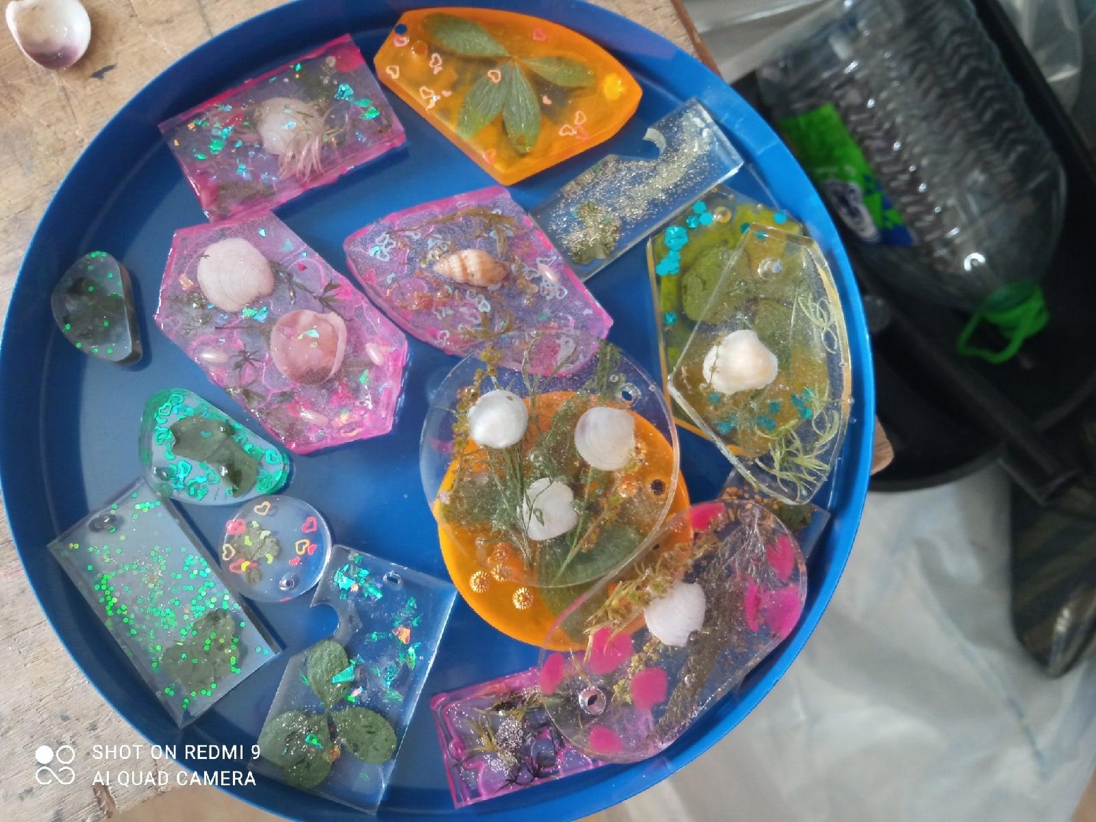 Уникальные кулоны или брелоки с четырехлистниками клевера, просто красивые подвески с ракушками и лично мной связанные игрушки.