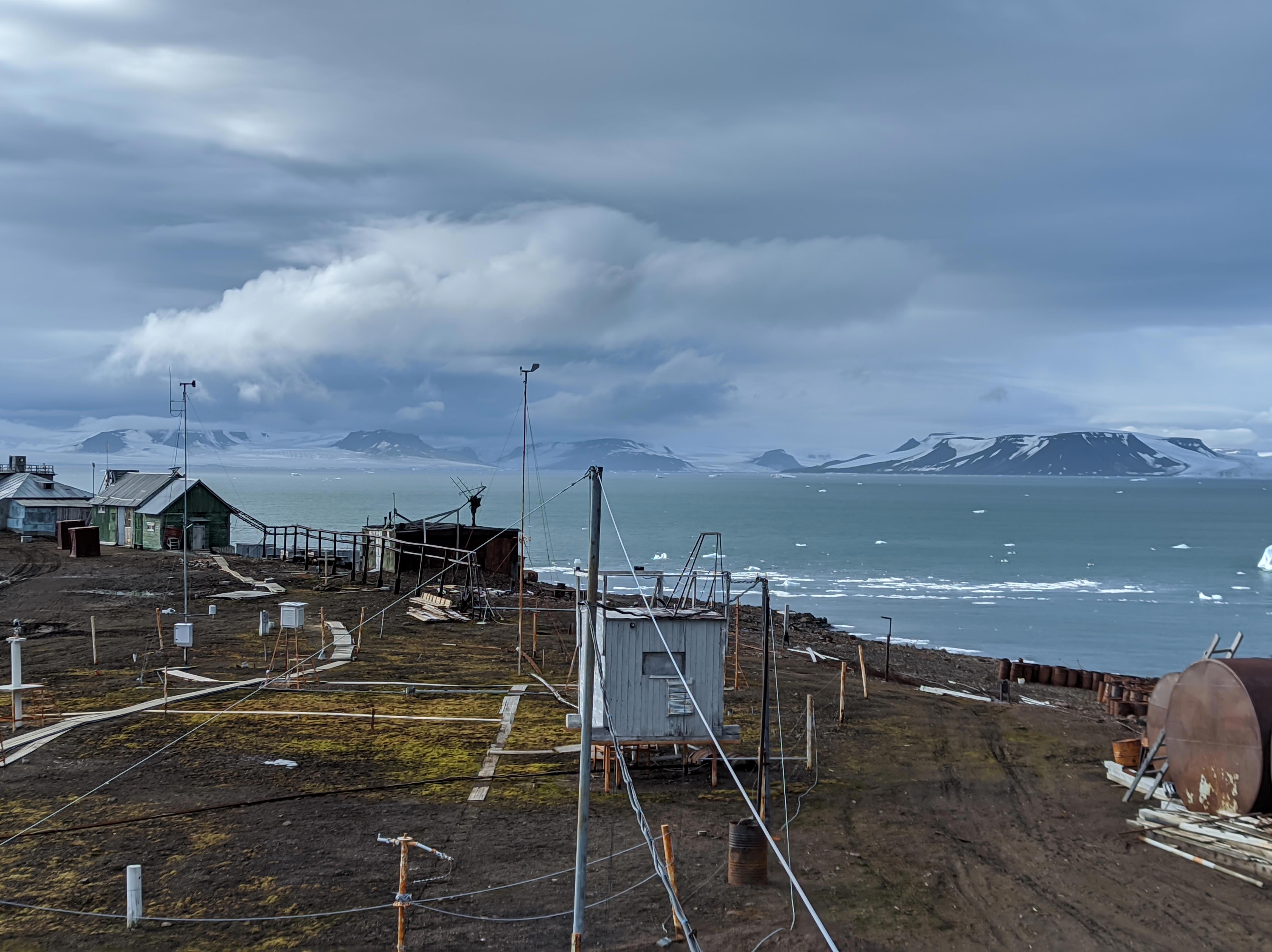 Карабкаюсь наверх. С верхотуры станция вместе с окрестностями видна как на ладони. Угловатые темнеющие дома нанизались бусинами друг за другом на нитку ожерелья, обвернулись вокруг озера. Источник доступной пресной воды в Арктике — ценнейший ресурс. Неудивительно, что обсерваторию решили построить именно здесь.