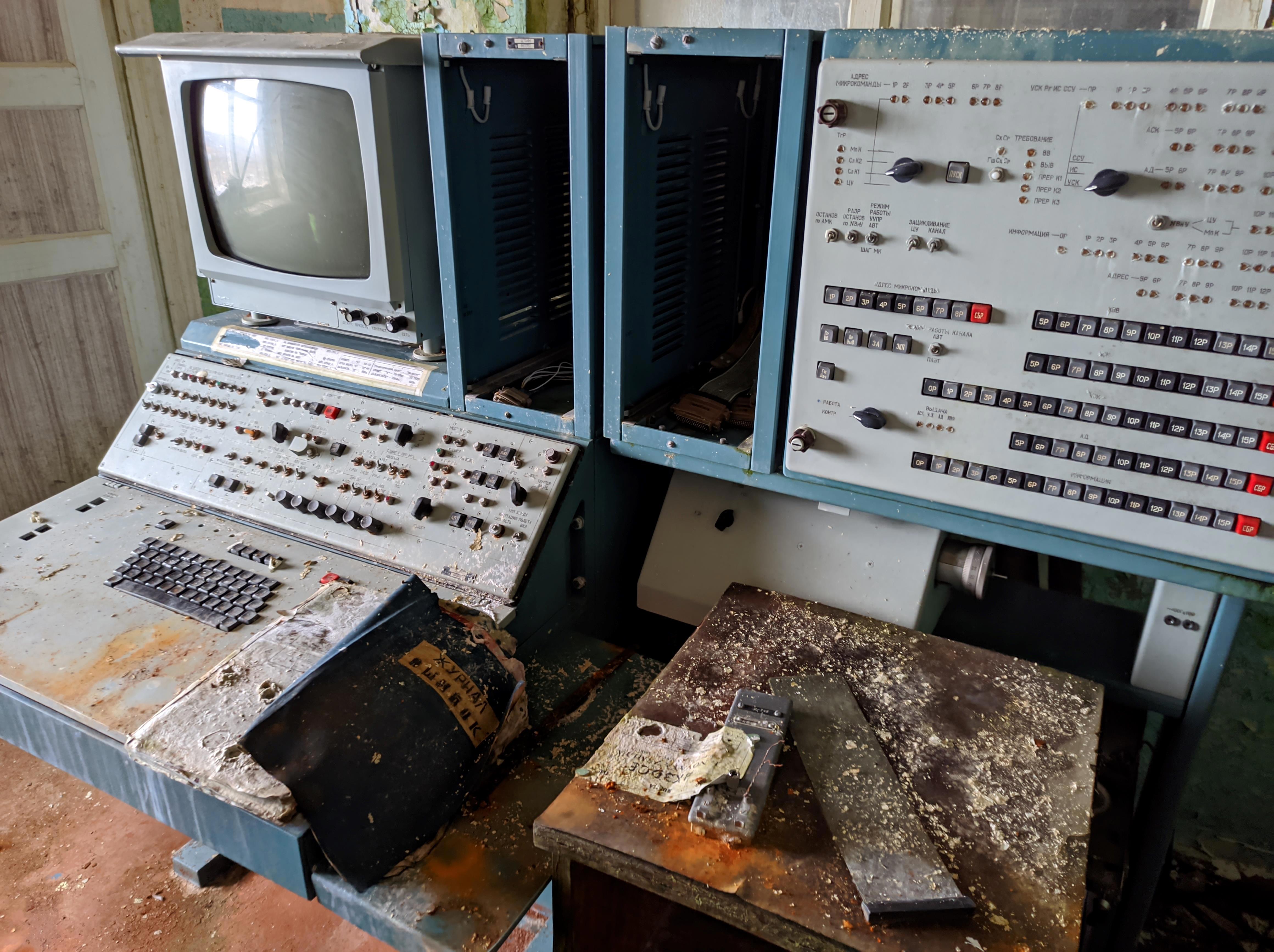 Высятся ящики с электронной требухой; вокруг датчики, мониторы, тумблеры, микросхемы, радиолампы, табло с безжизненными цифрами и стрелками. На самом краю пульта управления, усыпанном лохмотьями отслоенной краски, распластался липкий от влаги пухлый журнал. На обложке выведено от руки печатными буквами: «Журнал ошибок».