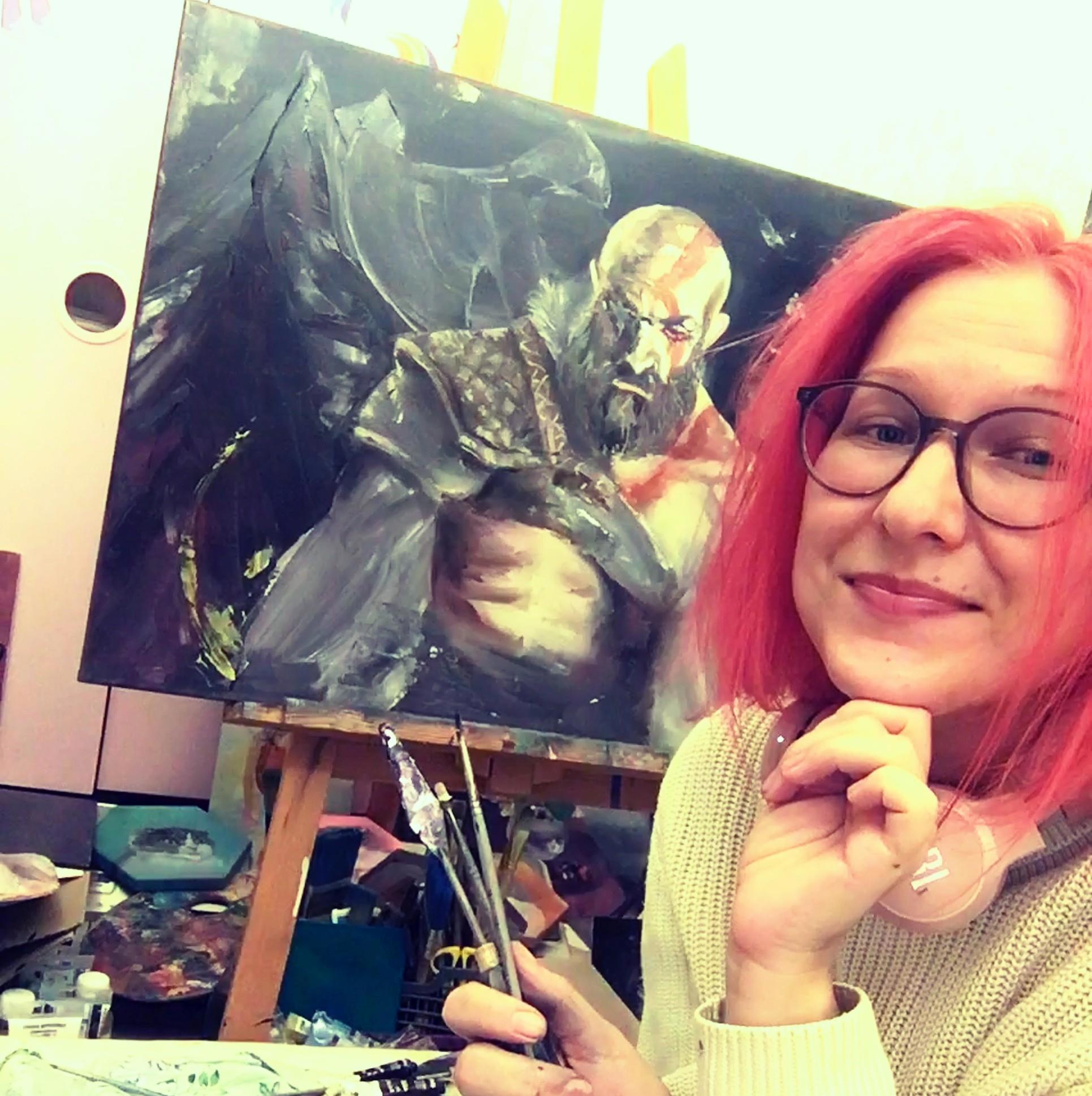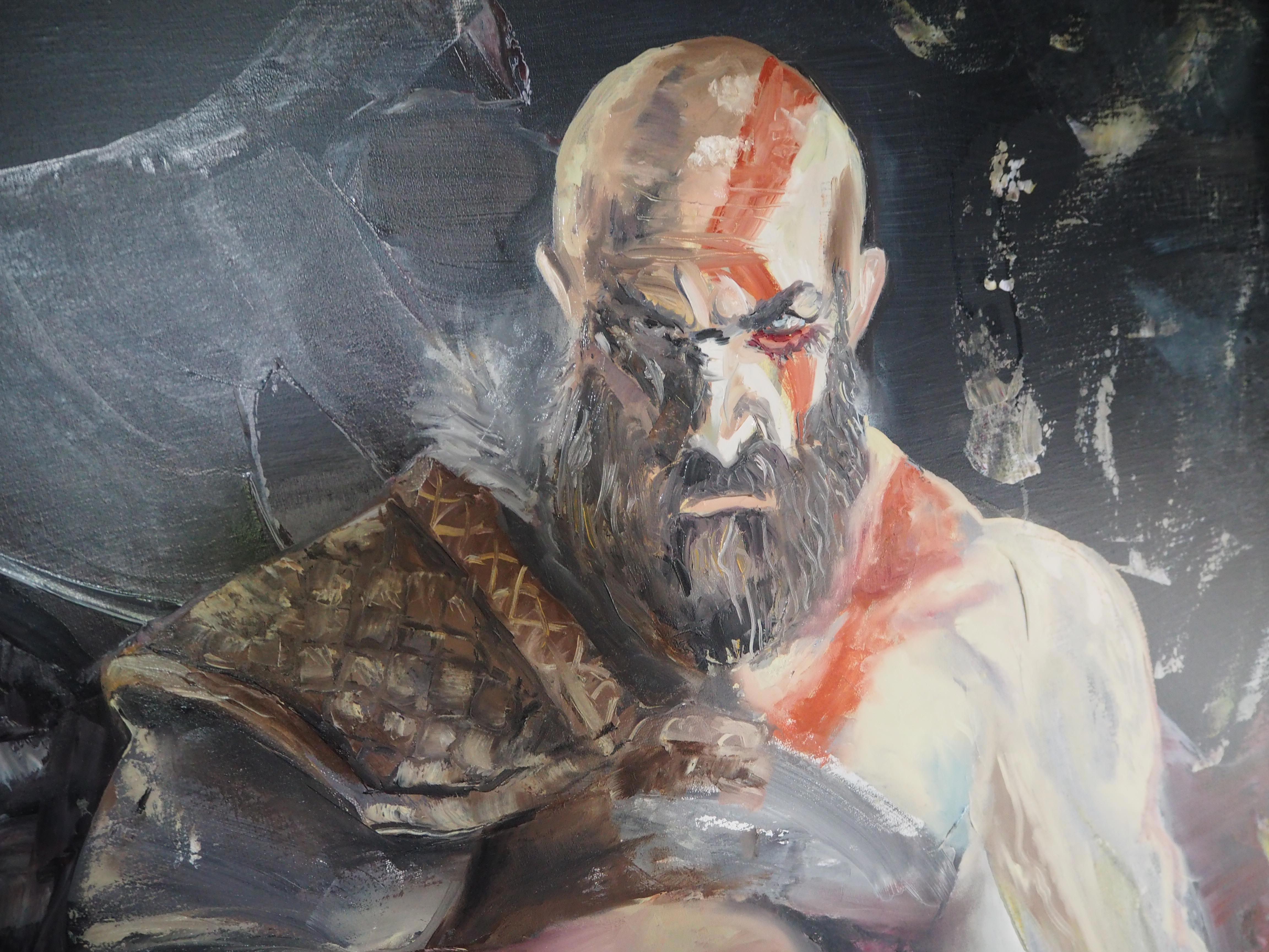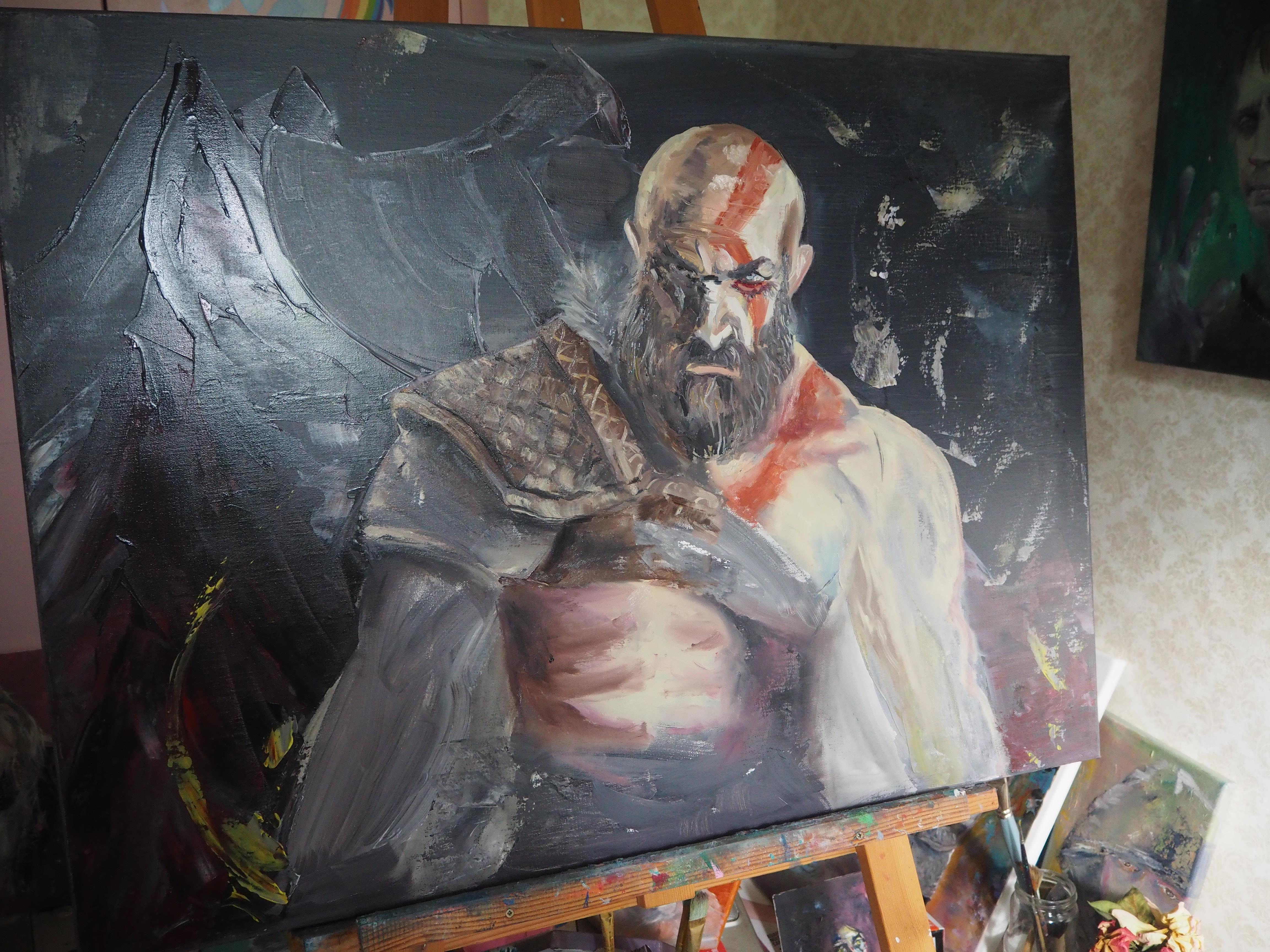 Рисую я в своей спальне, так что у меня теперь суровый лысый бог войны в комнате тусит. Взирает. Видео на этот раз длиннее получилось, с маслом работать всегда интереснее, чем с акрилом.