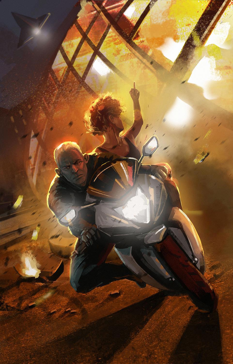 Я вообще люблю рисовать мужских персонажей, а здесь еще нужно было показать экшен, взрывы, пыщ-пыщ! Так что эта иллюстрация настоящий экспириенс)