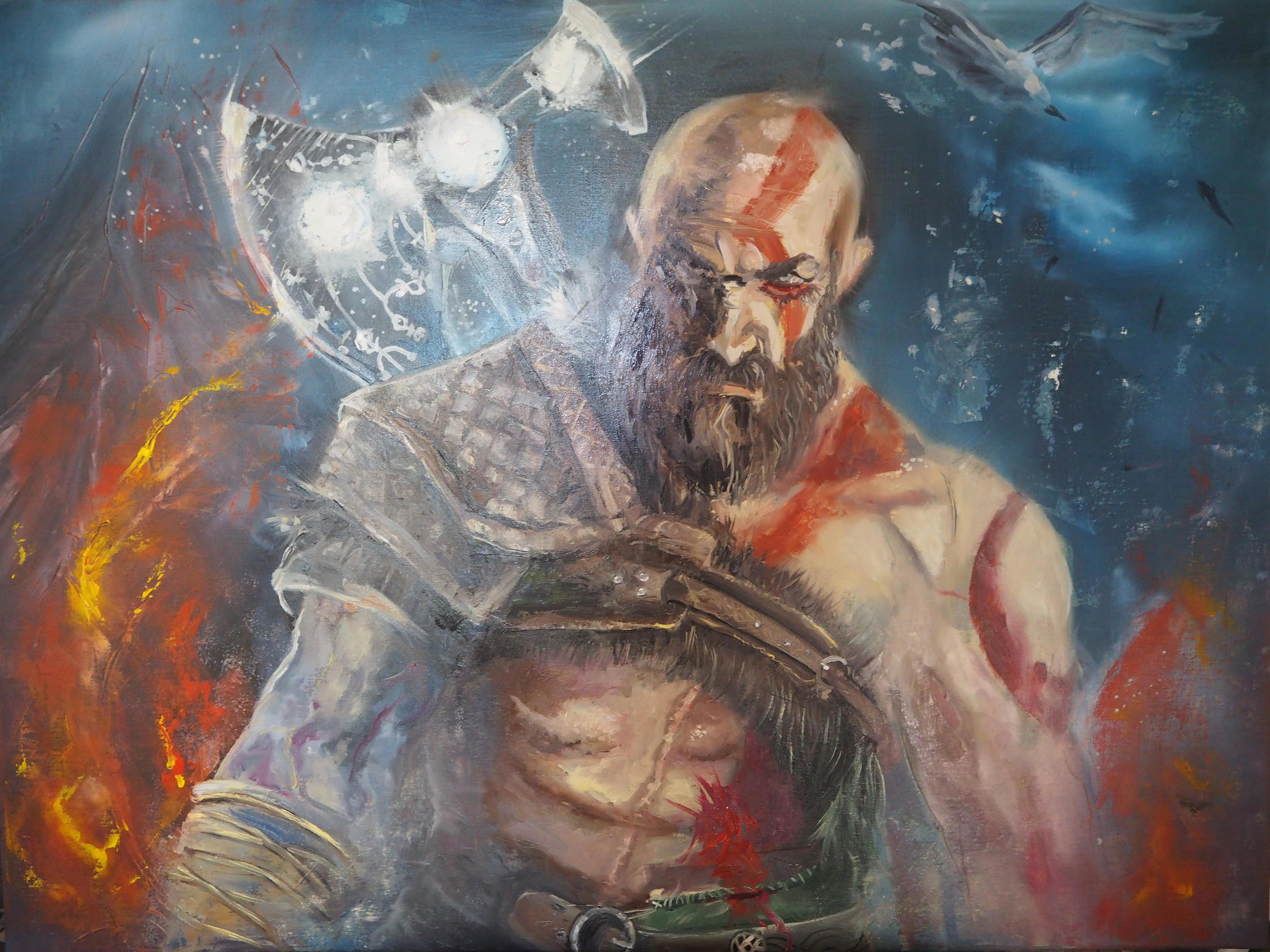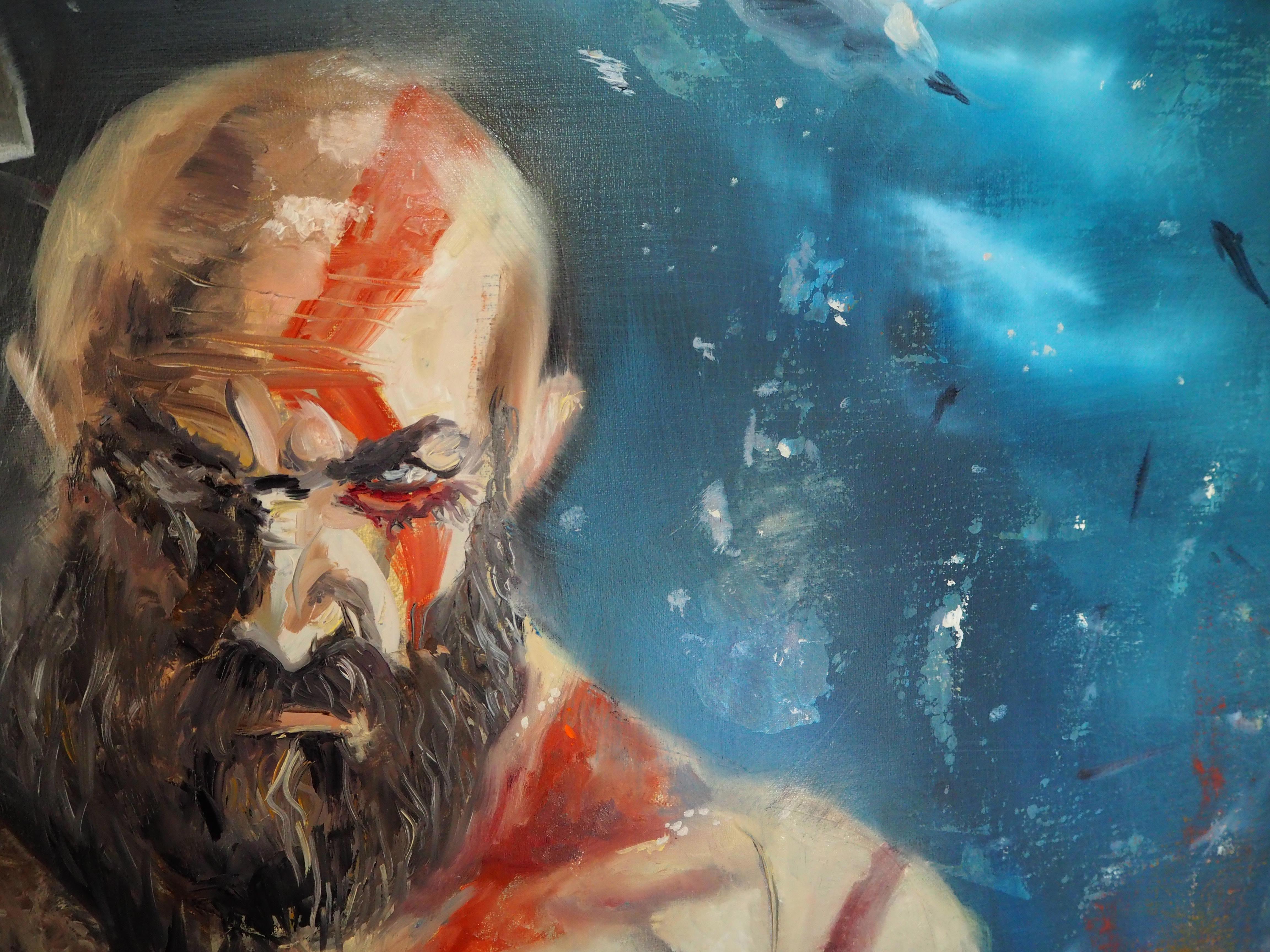 Фотографировала итог этого дня утром, поэтому дневной свет юга выжигает обычно  глаза  засветил темную сторону лица Кратоса.