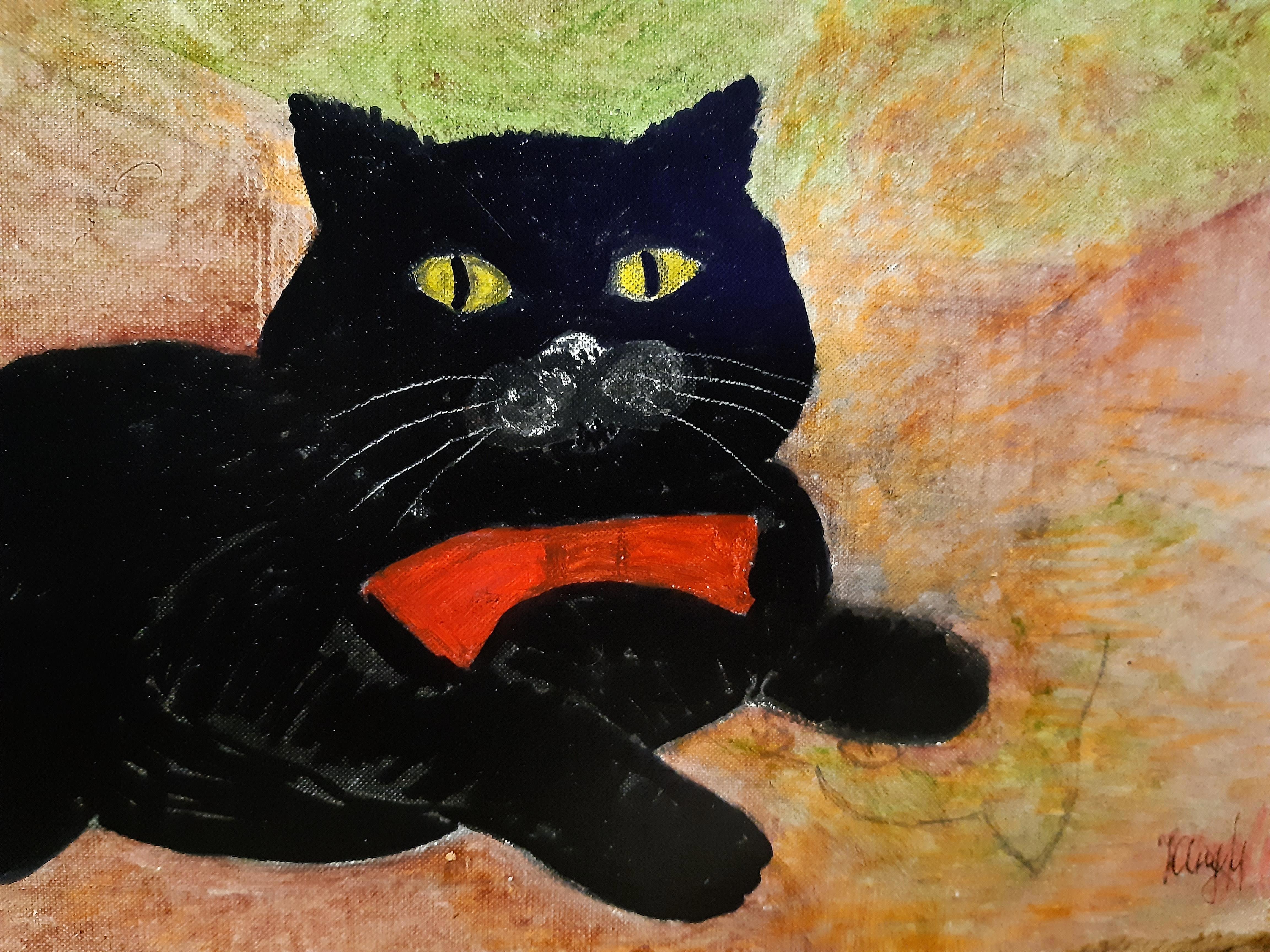 Автор: Андреева Юлия ИгоревнаКота звали Бегемот Андреевич Балабуха. Портрет писался в подарок Андрею Дмитриевичу и раньше висел у него в кабинете. Как сейчас не знаю.