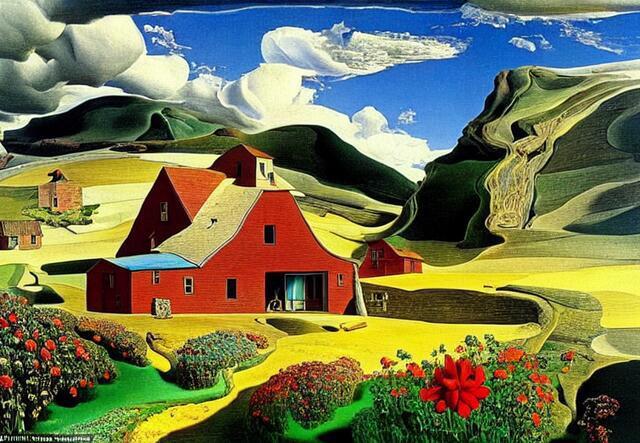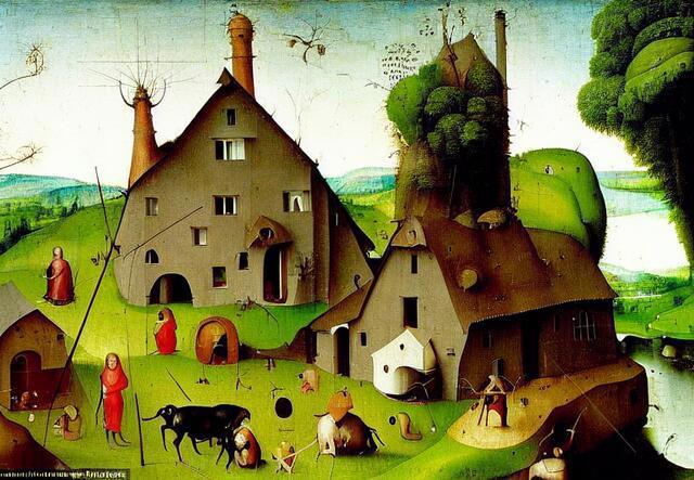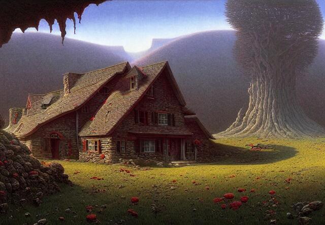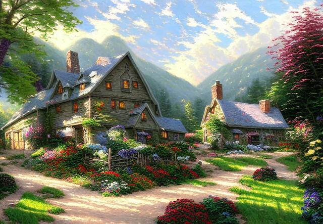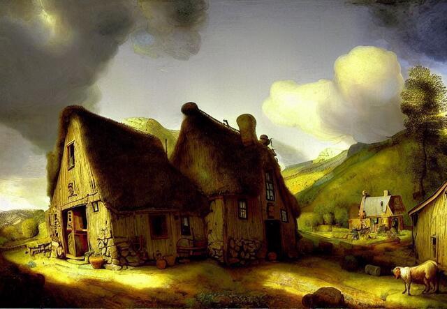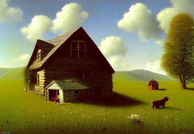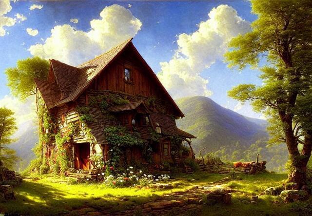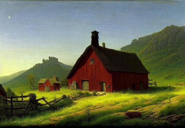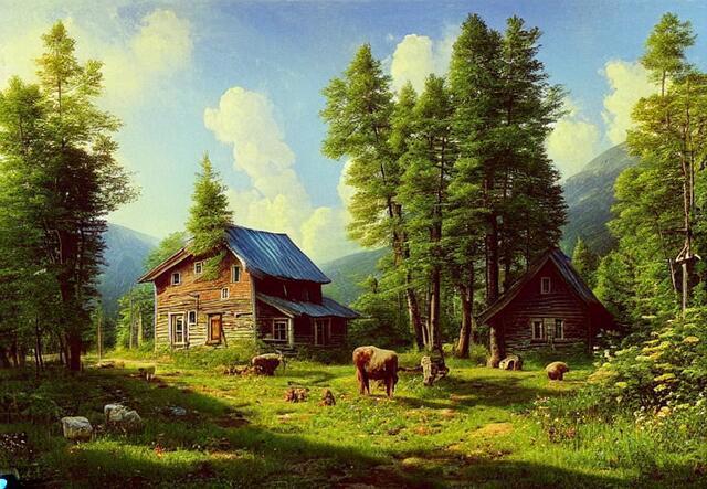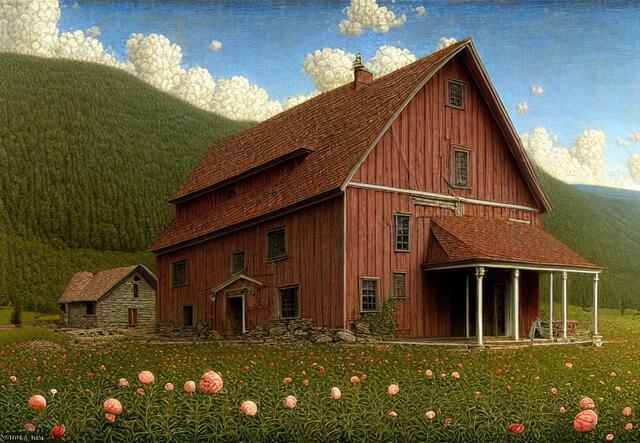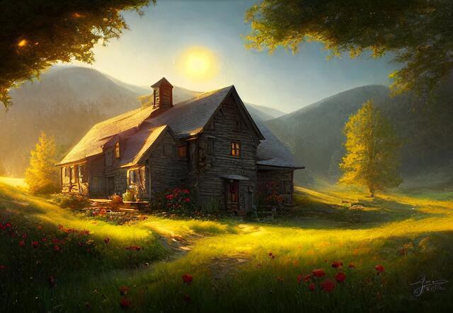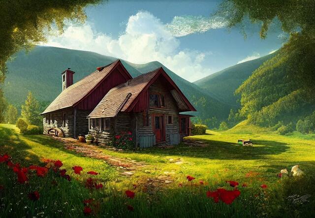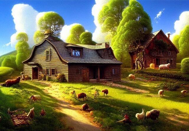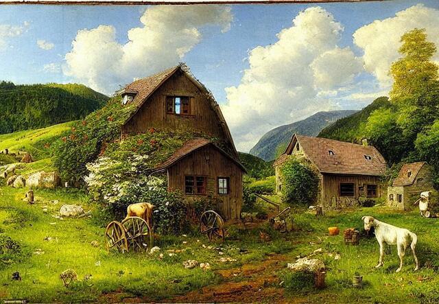 Стили - великая вещь. SD понимает несколько сотен стилей. Ниже (под спойлером) приведены примеры того, как выглядели бы изображения фермерского дома в горах среди цветущих долин - в разных стилях.