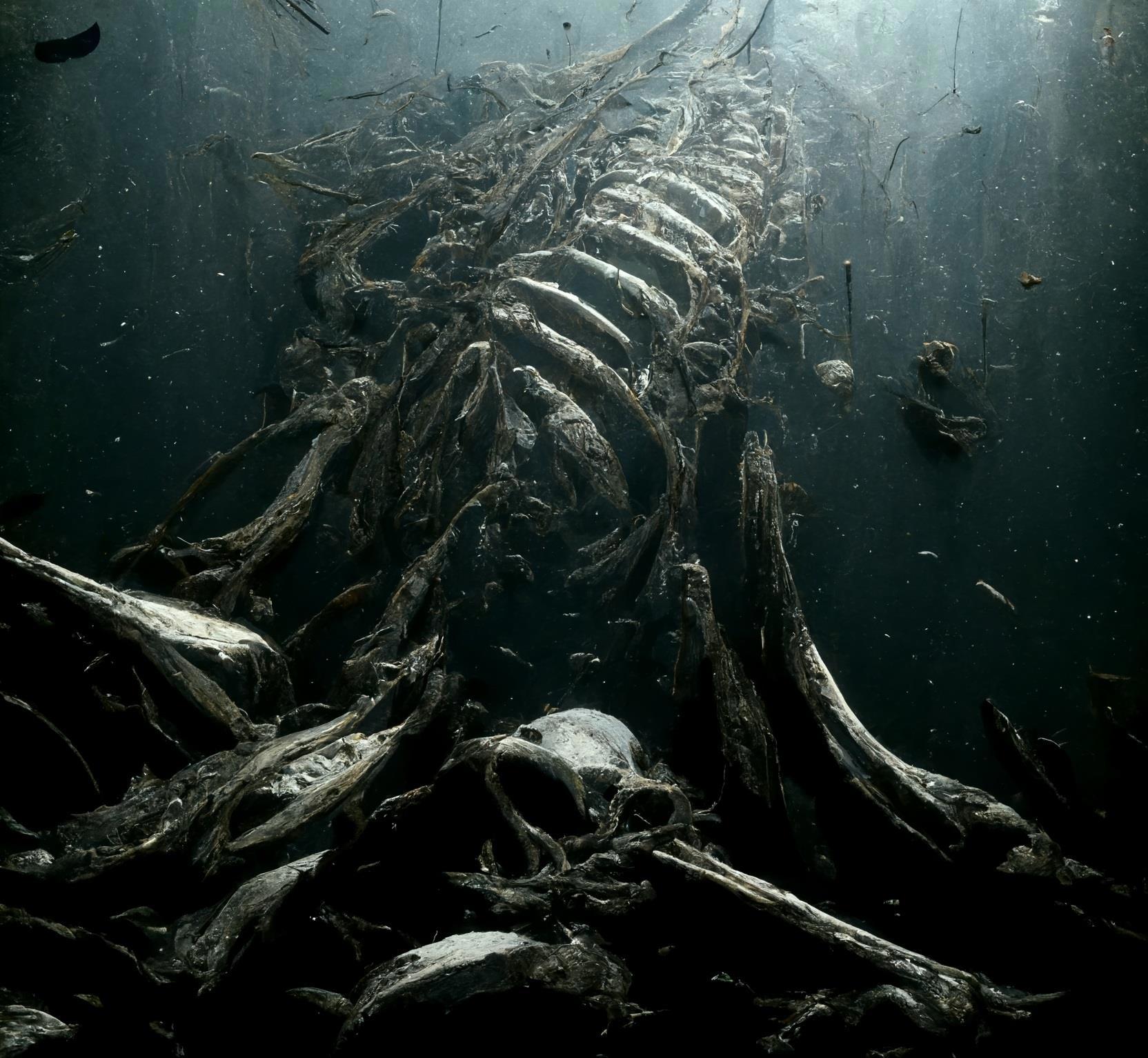 Падающие на дно обглоданные кости кита. Обратите внимание, что в тегах присутствует Ханс Гигер )))