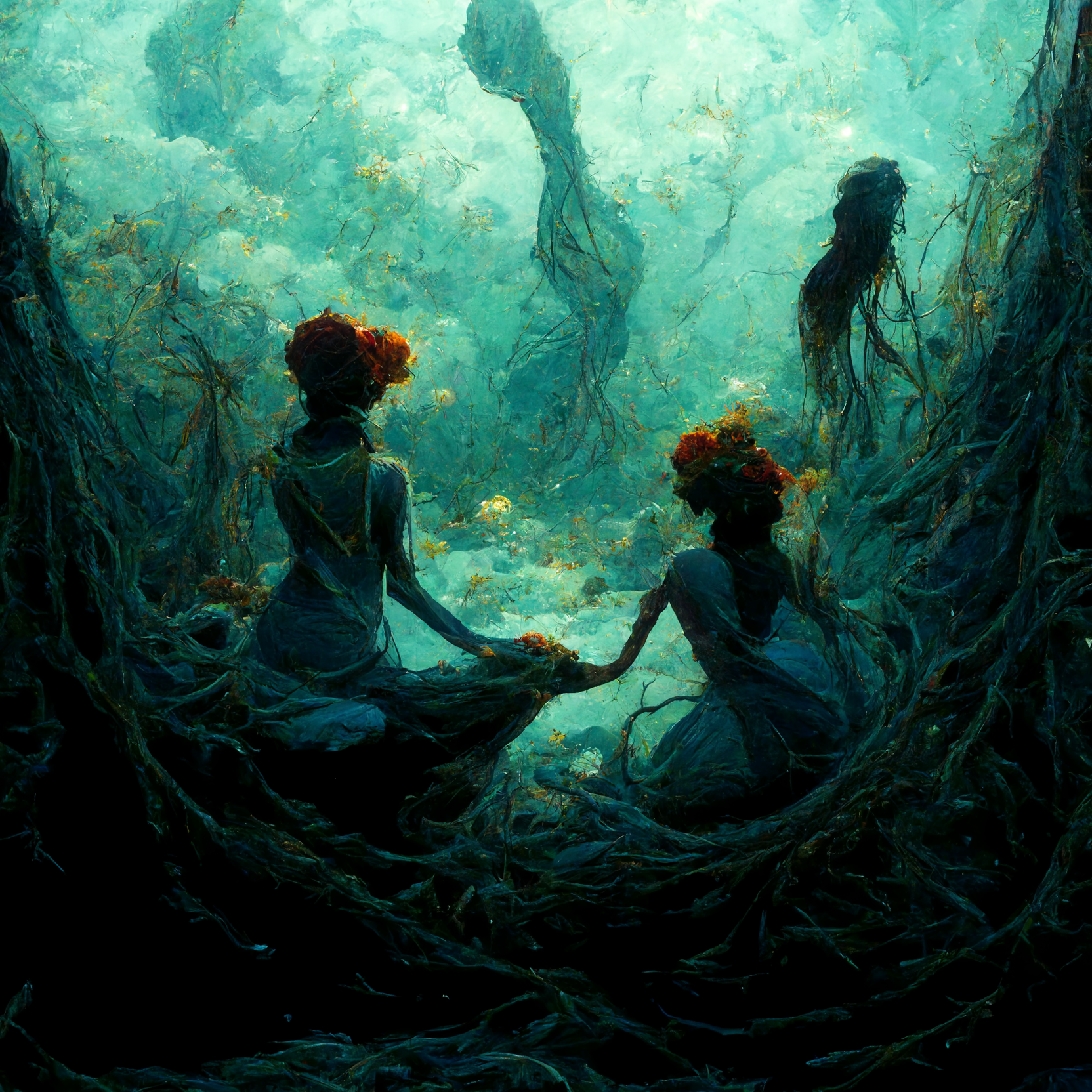 mermaids in the underwater reef