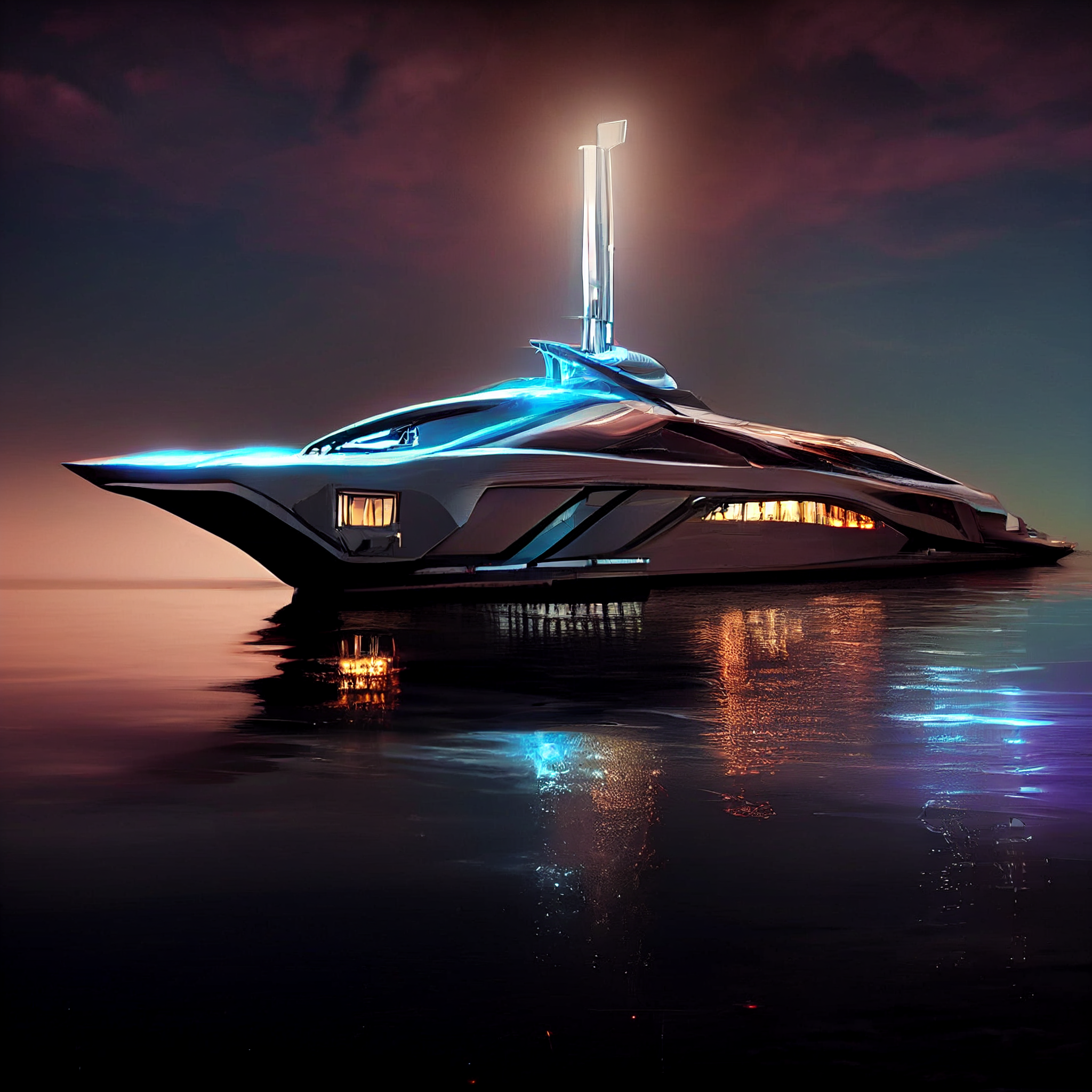 sci-fi futuristic yacht, cinematic lighting, intricate filigree metal design, ultra realistic, photorealistic, unreal engine, hyper detailed, fantasy, 4k, 8K