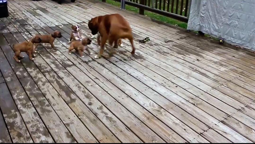 И особенно интересно смотреть на трогательную заботу мамочек :). Недавно видел видео, где маленьких щенят впервые начали знакомить с папочкой - боксером. Таких видео немало. Очень интересная реакция папочек, не привыкших к общению с малышами. Вид у них просто ошарашенный :). (Ссылки на видео внизу и в конце).