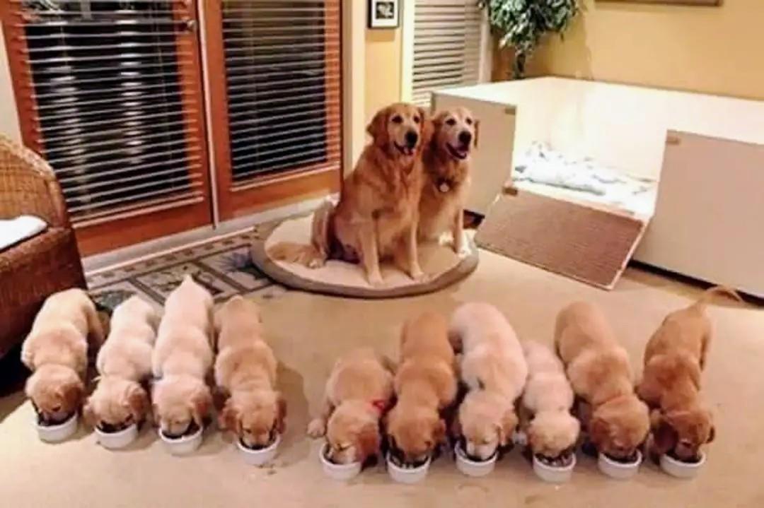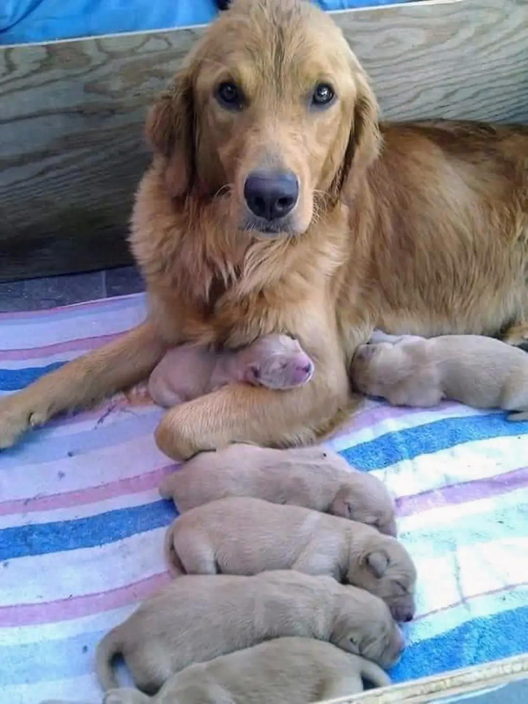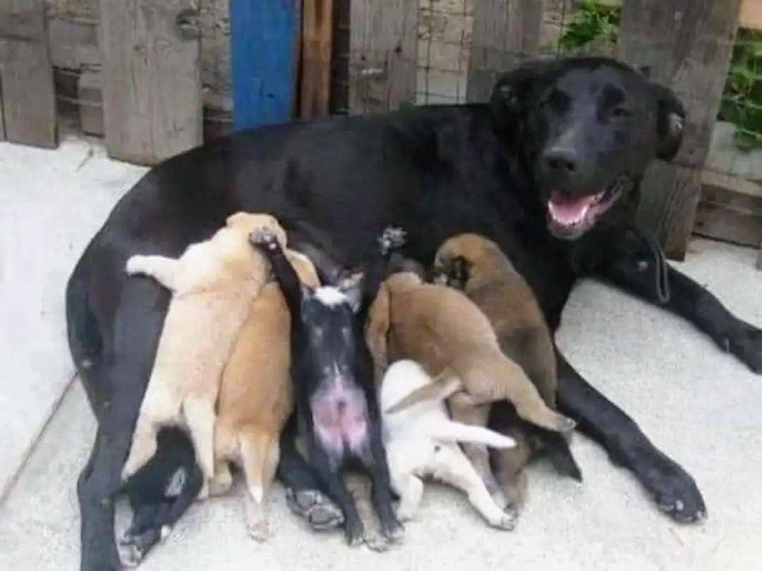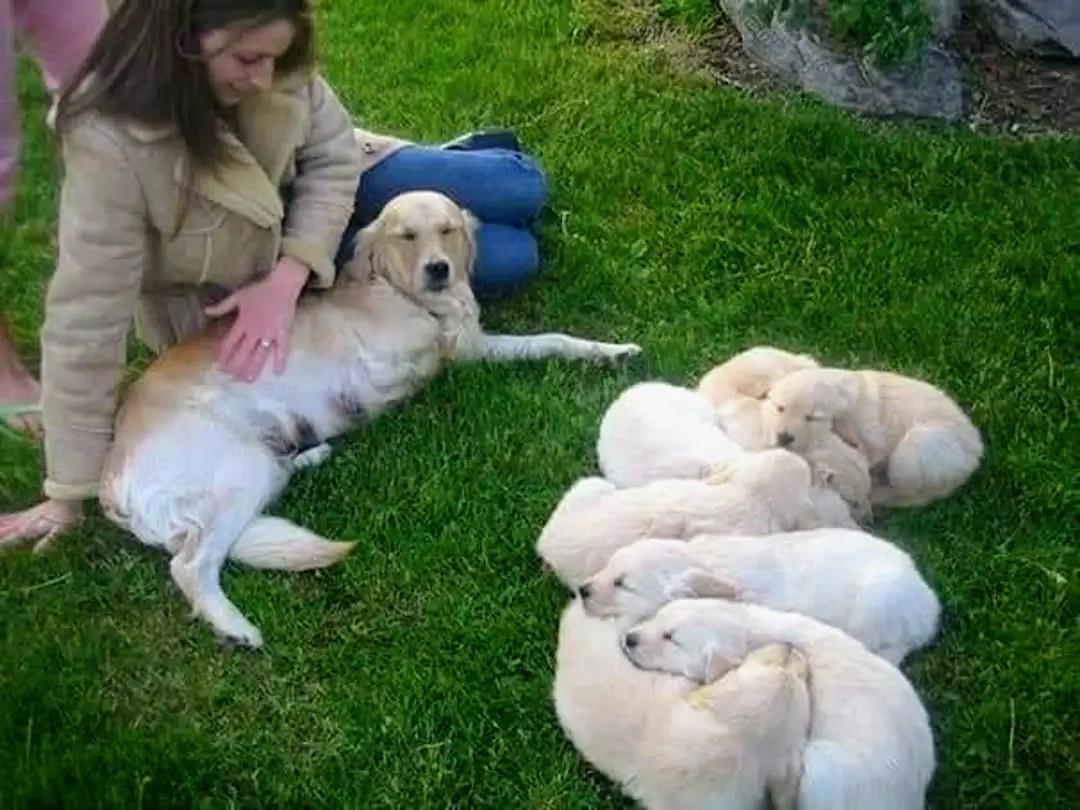 Мама лабрадор, лабрадорчики и их общая человеческая мама, которая заботится обо всех :)