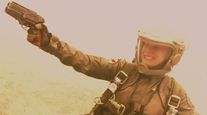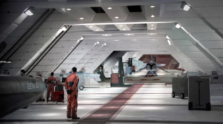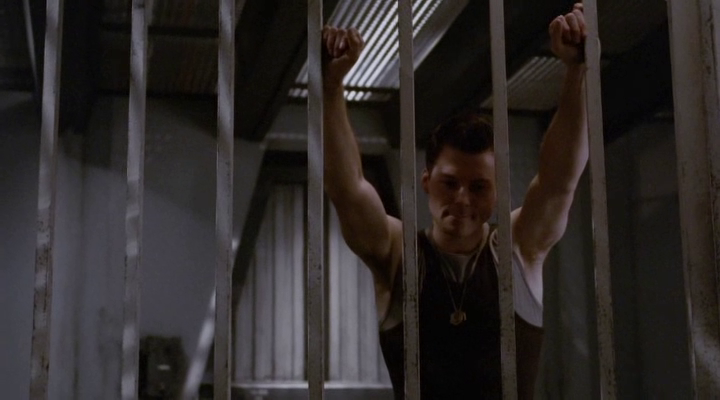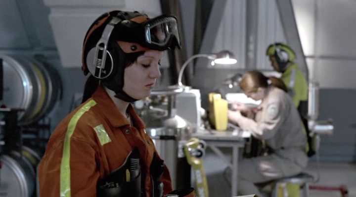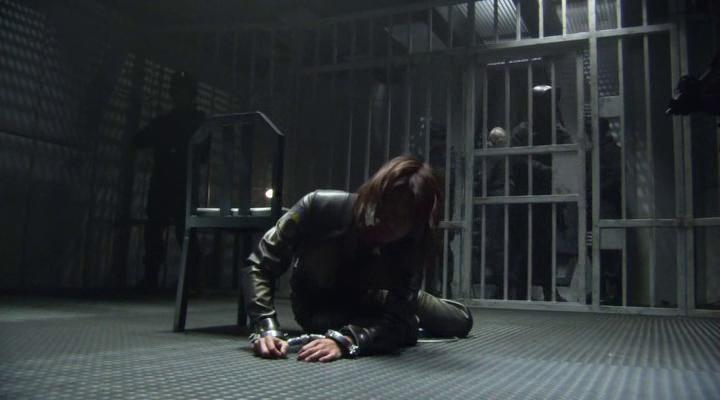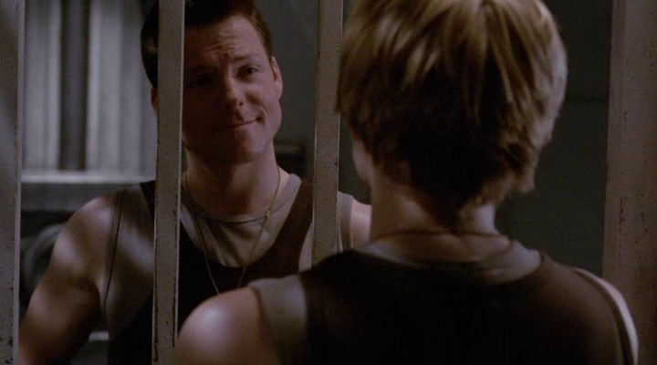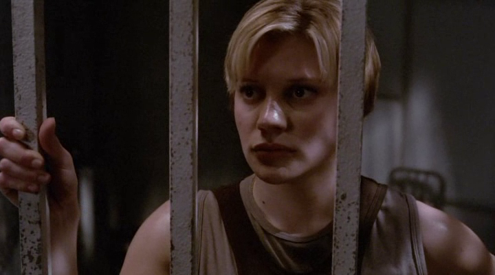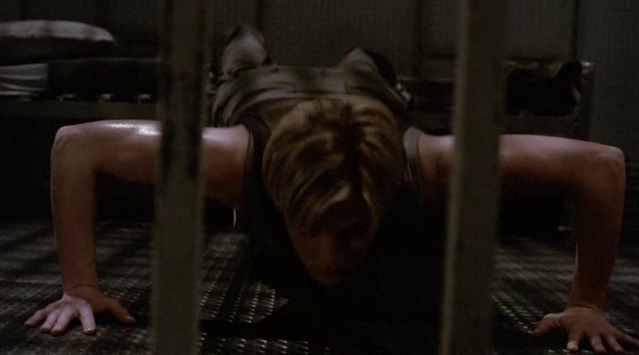 Старбак арестована и посажена на гаупвахту за то, что дала в морду вышестоящему офицеру. Здесь сразу становится понятно, что она с одной стороны крутая, а с другой - сумасбродка с дурным характером. Все, что ей остается за решеткой - развлекаться отжиманиями и приседаниями.