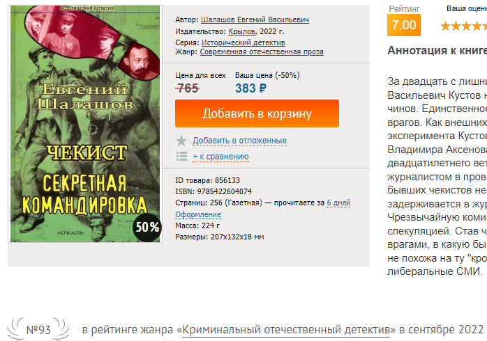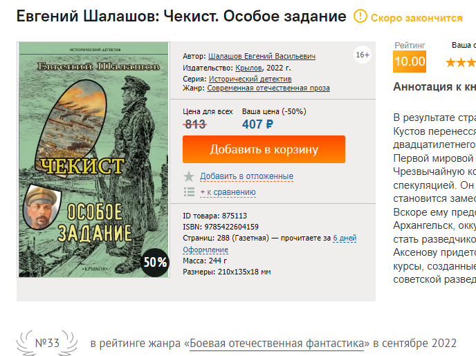 Автор: Евгений ШалашовИнтересно, почему в одном случае "фантастика", а в другом "детектив"?