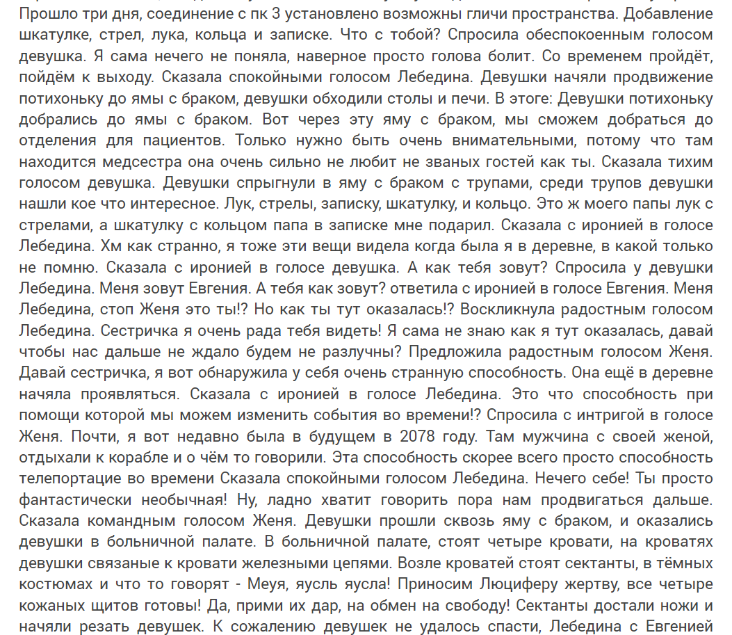 Теперь, после этого небольшого дисклеймера можно перейти и к цели нашего повествования другим авторам, которые гораздо щедрее. Не так давно мне посчастливилось почитать про Лебедину. Что я могу сказать? Это ШЕДЕВР! Во всём своём блеске и великолепии. Кто-то прочитал только первую главу, но мы с Наташей вчера доржались до второй. Да, сегодня у меня немного болят челюсти и живот, но разве такие мелочи могут остановить? Нет, только не меня.
