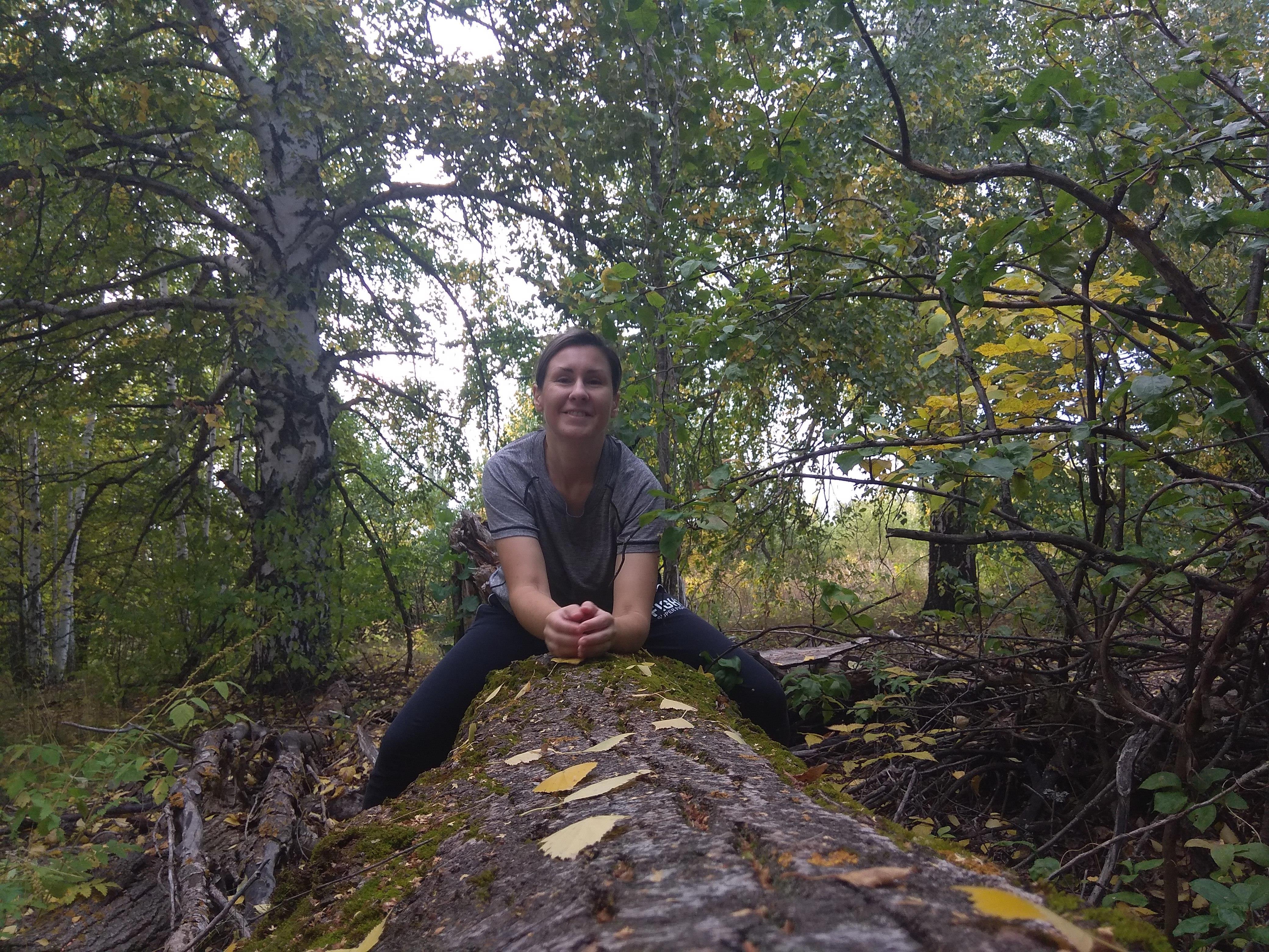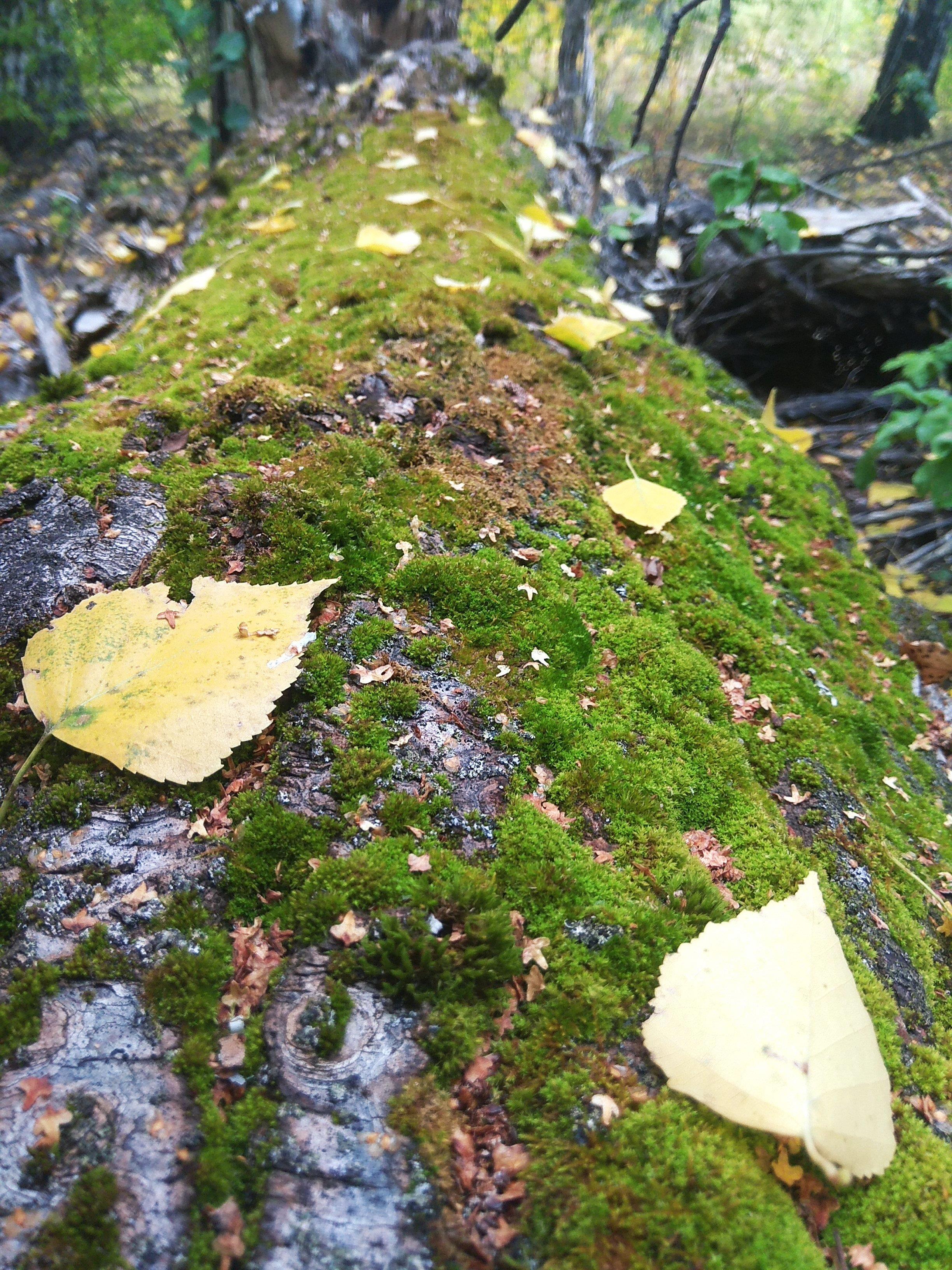 Нашла симпатичное бревно, поросшее мхом. Оторвалась по-полной: