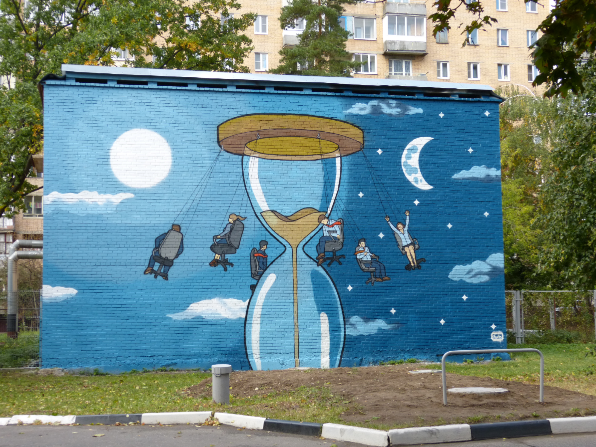 Когда будете идти к другим муралам, обратите внимание на малые архитектурные формы, которыми столь богат Железнодорожный. Среди них немало симпатичных и очаровательных объектов.