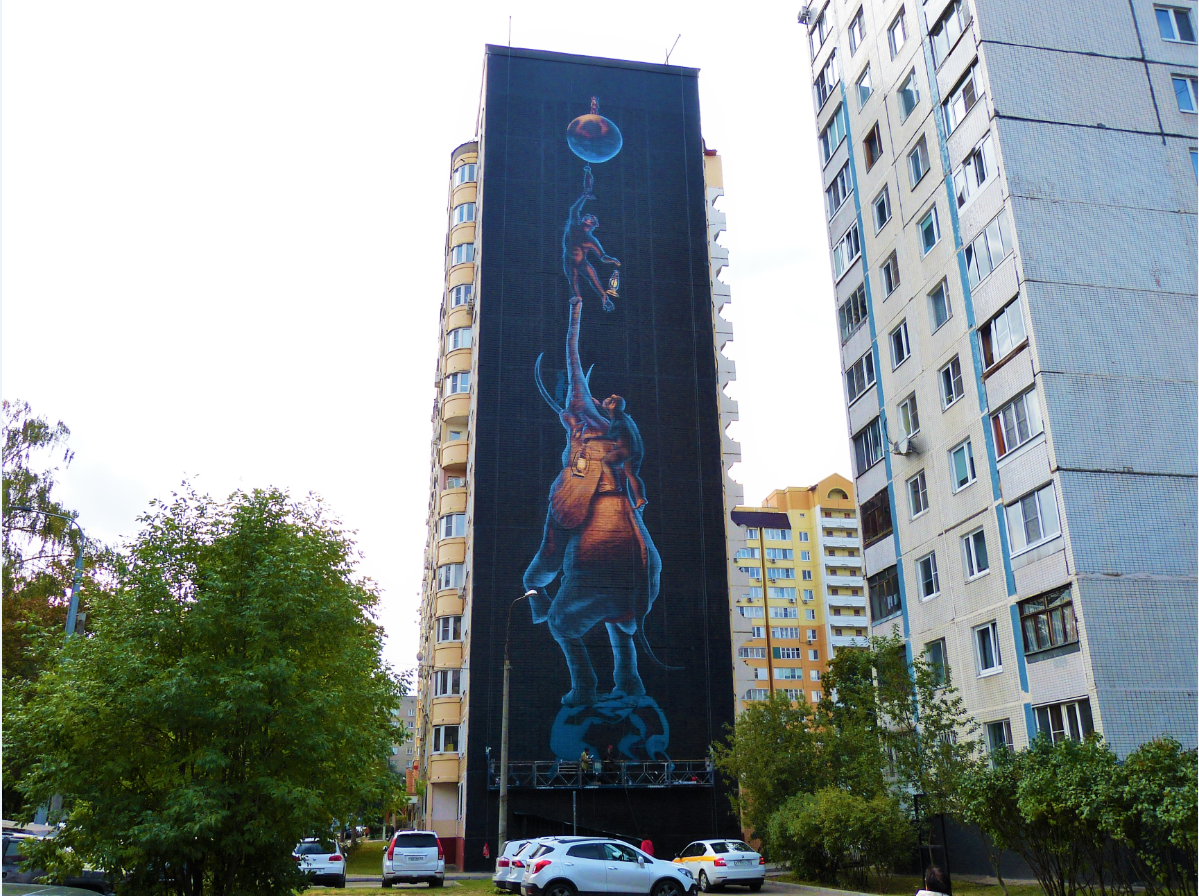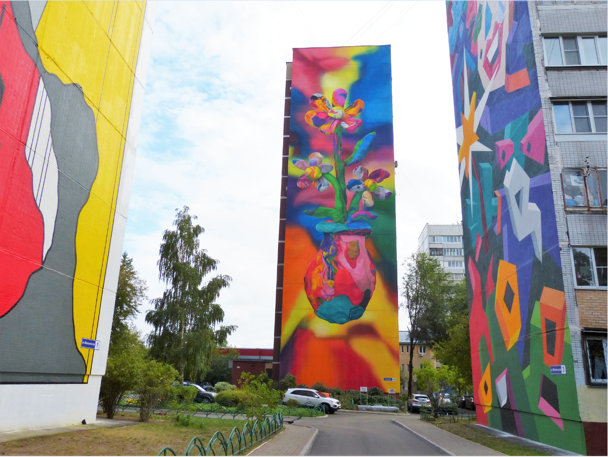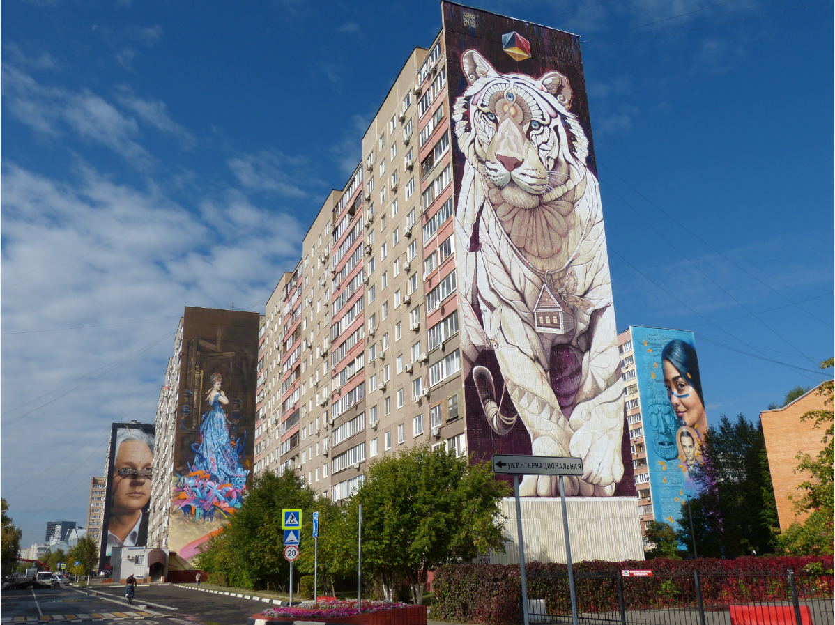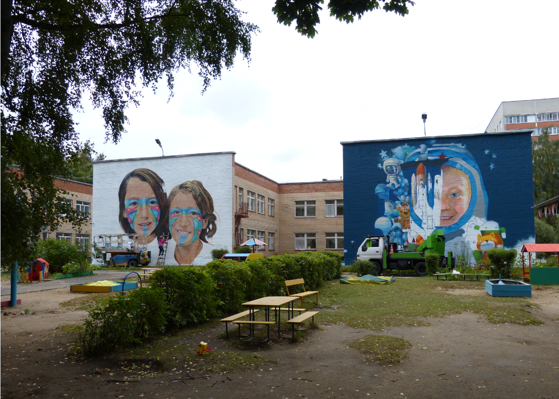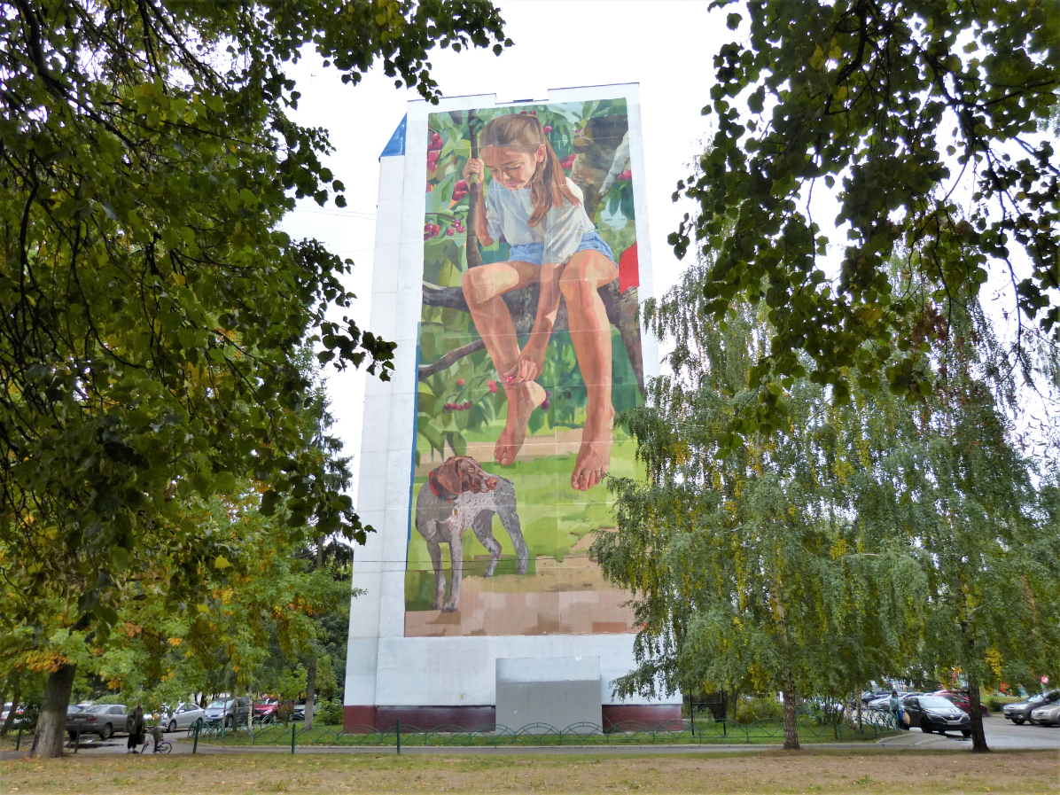 Но всё равно удачных картин на стенах немало. Возле всех работ должны установить информационные стенды с названиями муралов и фамилиями их авторов. Где-то их сделали, а где-то — ещё не успели.