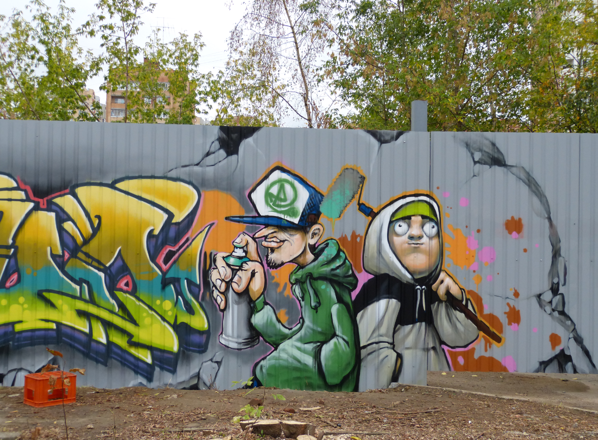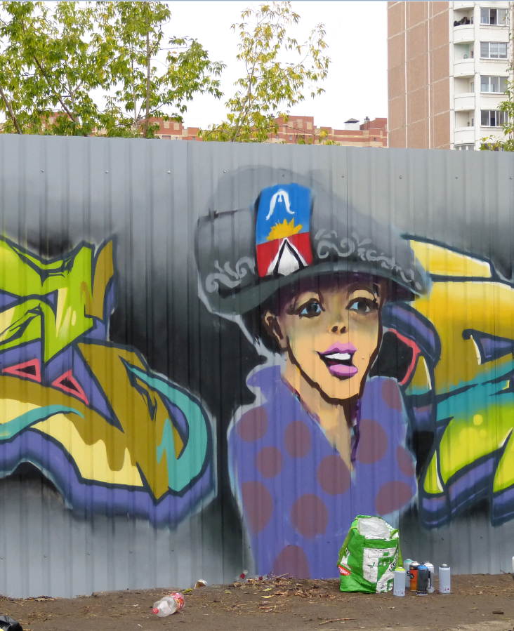 На Пионерской улице нам также встретились творения художников-неформалов.