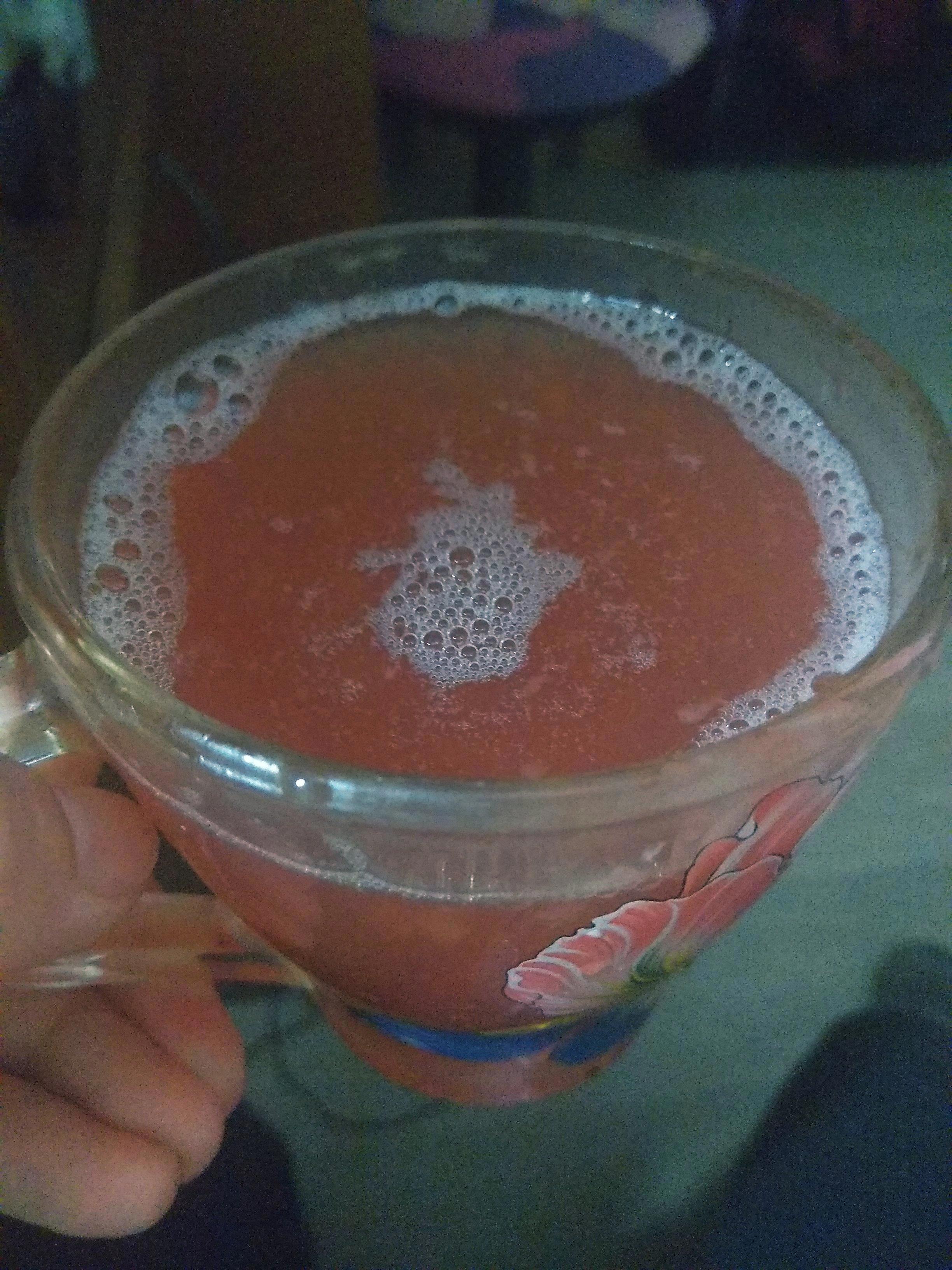 "Буль-буль", -- запел стекающий в банку сок.