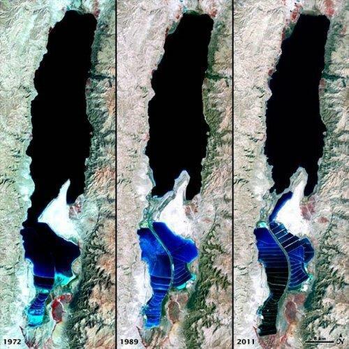 Мёртвое море высыхает, и данные показывают, что оно может полностью высохнуть в течение 50 лет, если не предпринимать никаких действий. Израиль и Иордан объединили усилия в попытке закачать воду в озеро из Красного моря, чтобы предотвратить это.