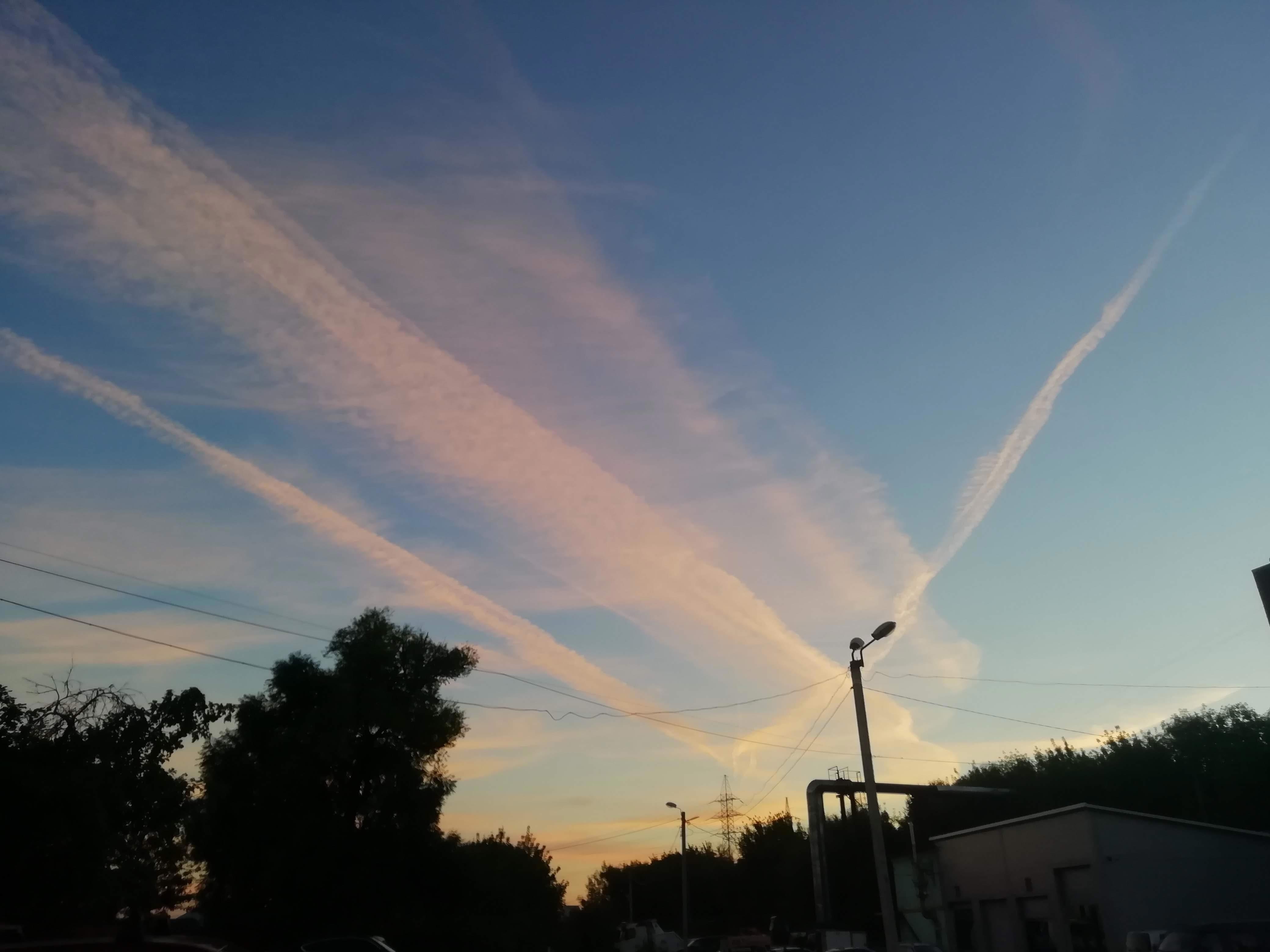 Но некоторые закаты меня воистину впечатляли. До сих пор гадаю облака ли это, или следы от самолётов?