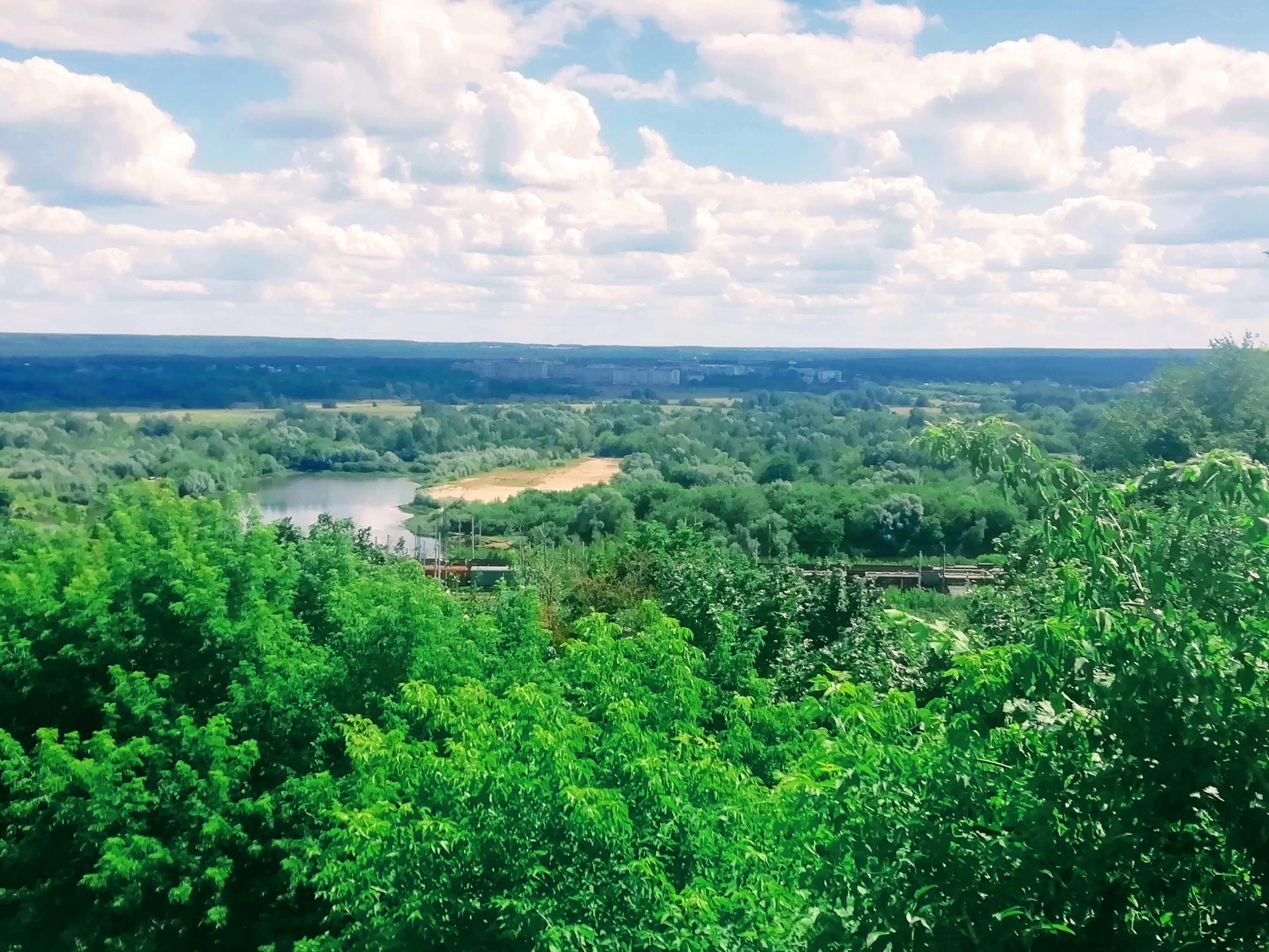 А вот и обрыв справа, там ответвления главной реки Клязьма, плюс железная дорога. Автор мелкий ростом, уж простите) Потому такой обзор.