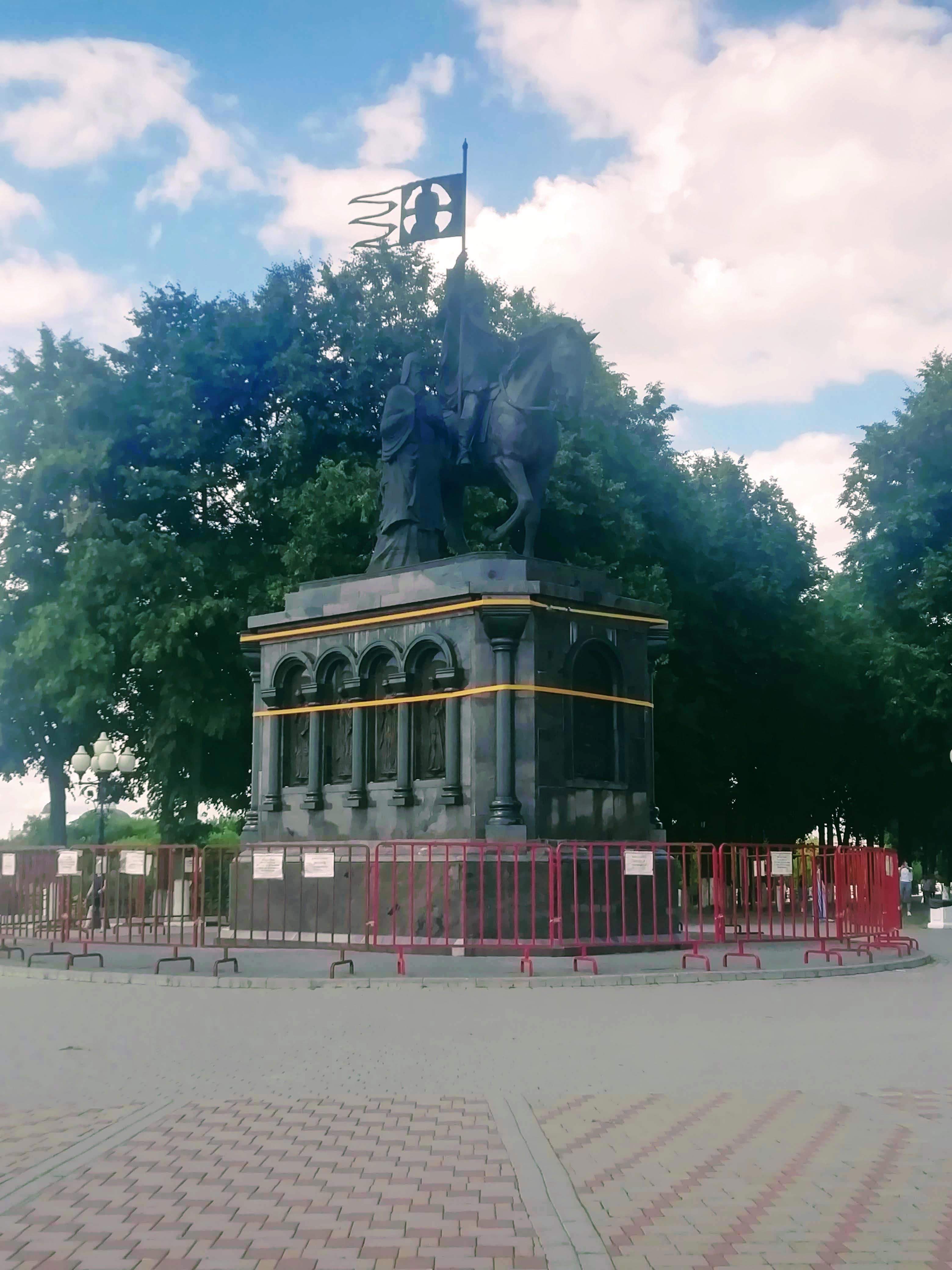 Стыдно)) но автор не знает чей это памятник, запомнила только что на реконструкции и к нему агрессивно не подпускали. Это сквер на холме.