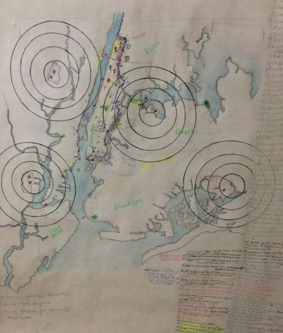 2) На карте мы ориентируемся на левый нижний эпицентр — там вдалеке: порты и аэропорт Ньюарка (над ними и бахнем)