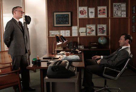 Думаю кресло можно взять из первого слайда. Кожа, клепки, натуральное дерево. Все это говорит о состоятельности и укоренелости моральных нравов. У Когана побольше (он хоть и в дерьме по самые уши, но он босс). У Гресона поменьше, как и любое кресло для «гостей» в кабинете. (Вес мебели должен чувствоваться)
