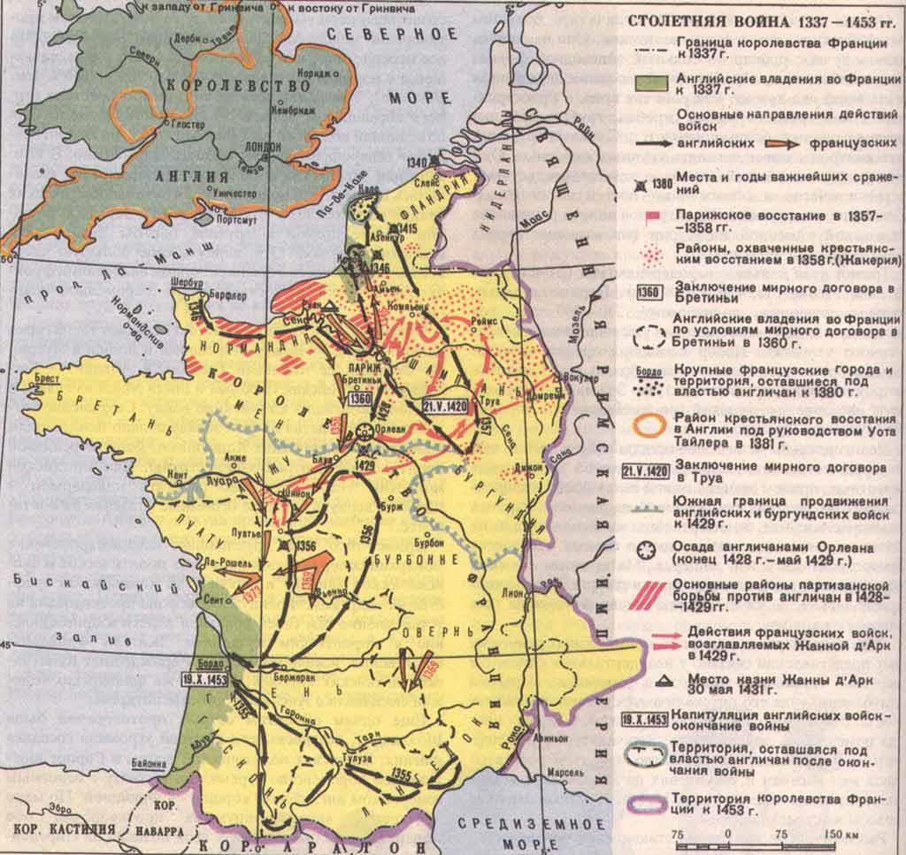 В 1429 году никому неизвестная крестьянка Жанна де’Арк, сняла осаду с Орлеана, а затем в серии из 14 сражений разбила лучшие силы англичан и союзных им бургунцев на континенте. После помогла короноваться дофину Карлу в Руане.