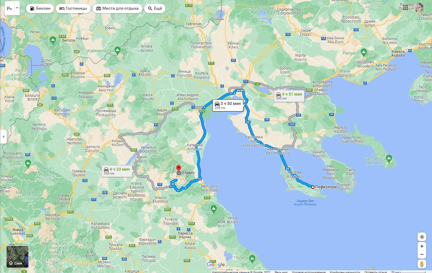 Поспав несколько часов, мы встаем в четыре утра. Наспех выпиваем кофе и в путь. От Пефкохори до Олимпа нам ехать почти триста км