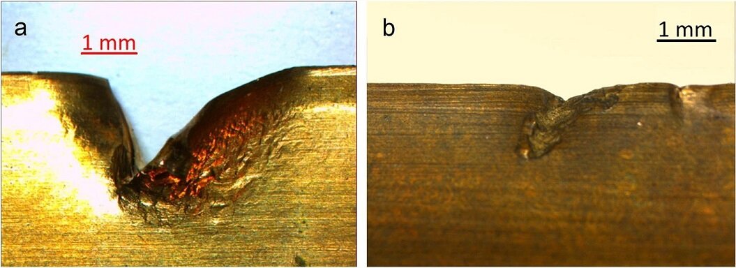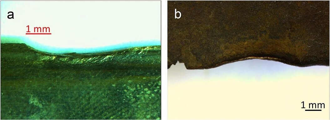 6. Прямоугольная выемка (получалась при парировании лезвия клинка сильной частью клинка противника) - 25 повреждений на 17 образцах.