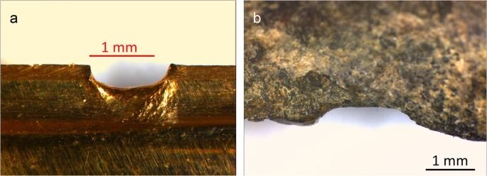 На третьем этапе были проанализированы повреждения, имеющиеся на 110 мечах среднего и позднего Бронзового века, взятых в английских и итальянских музеях. Были отобраны только целые мечи с отчетливо заметными повреждениями и выявлено 23 разных типа повреждений, которые были отнесены к полученным в древности.