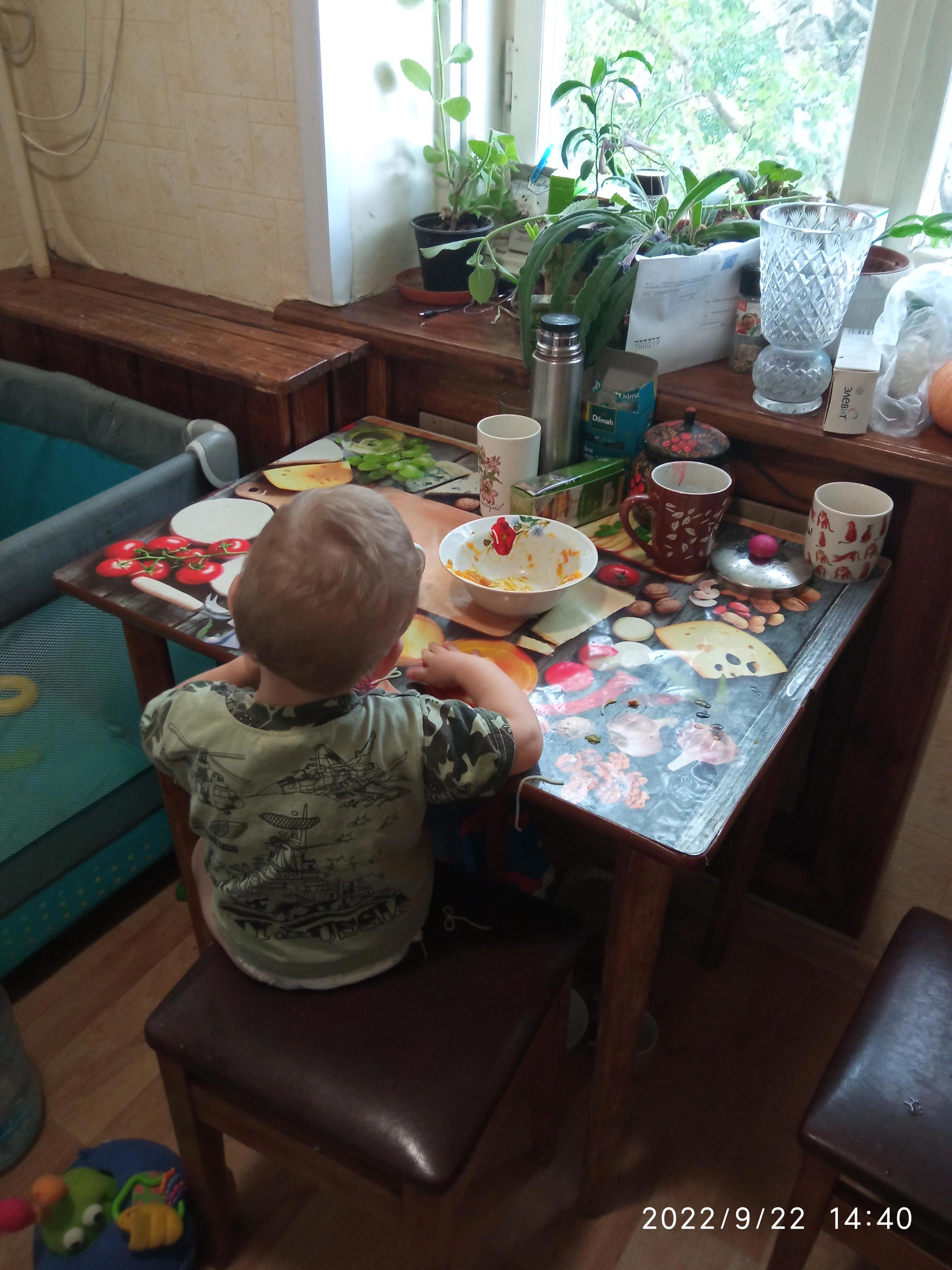 С недавного момента вытребовал кушать как взрослый. И таки заново начал есть. А то блин нарезал по сто кругов вокруг тарелки😢. Детский стульчик переехал в детскую. Восторг не передать.