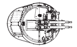 Башня была несколько смещена к корме, но на полном ходу корабль все же зарывался носом. К правой стенке башни крепилась стрела (7,5 м) и лебедка крана, по левой стенке шел трап на ходовой мостик. На кормовой стенке был неподвижно закреплен бронированный дальномерный пост - бронированная рубка с размерениями 1,17x2,15x3,65 м, дополнительно поддерживаемый двумя откосами.