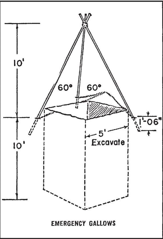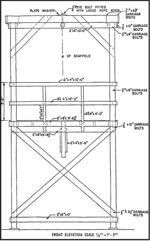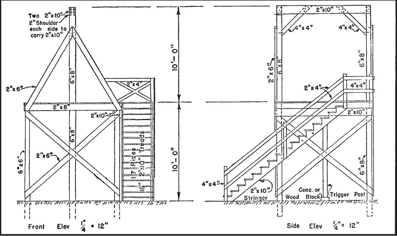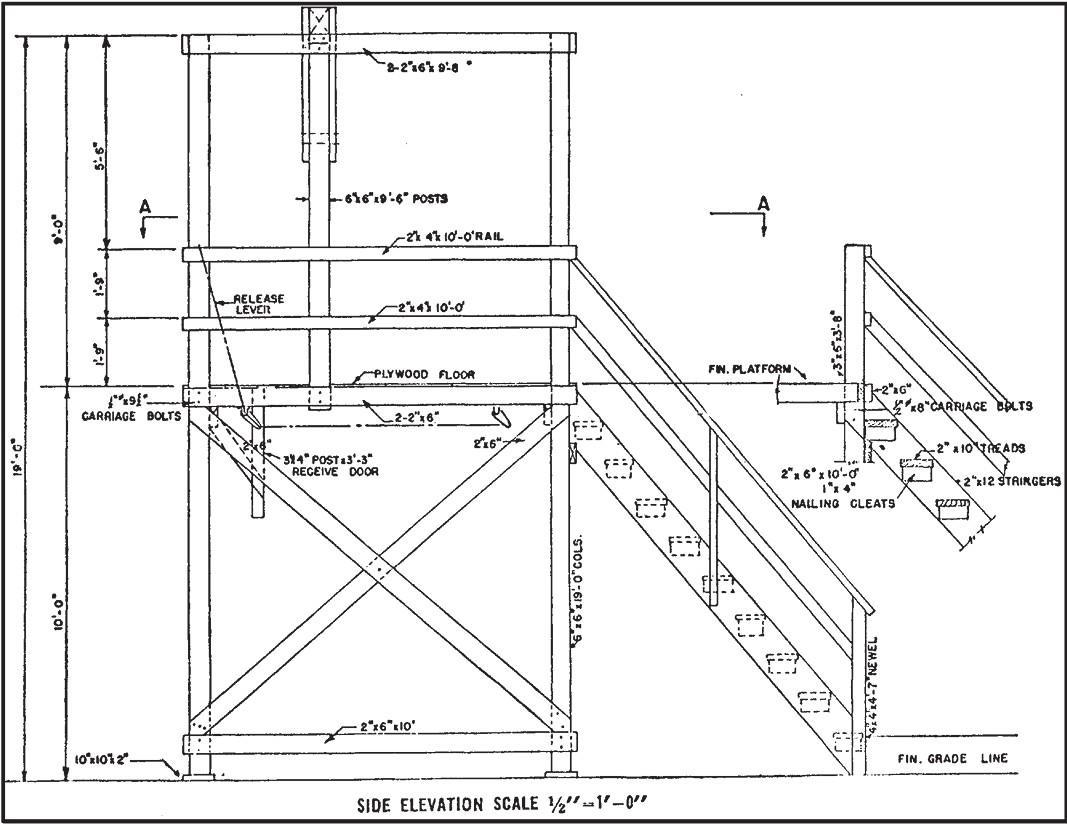 В качестве альтернативы полупостоянные строительные леса могут быть сконструированы без какой-либо специальной металлической арматуры и использоваться, когда соответствующий командир сочтет это целесообразным. В этом случае люк освобождался путем выбивания поддерживающей спусковой стойки.