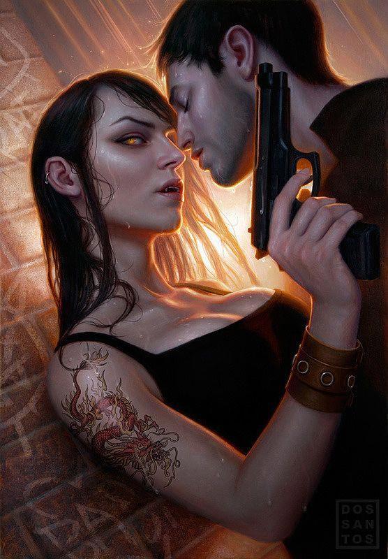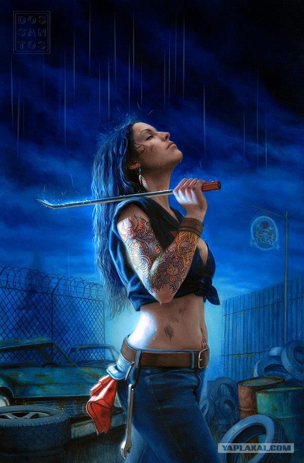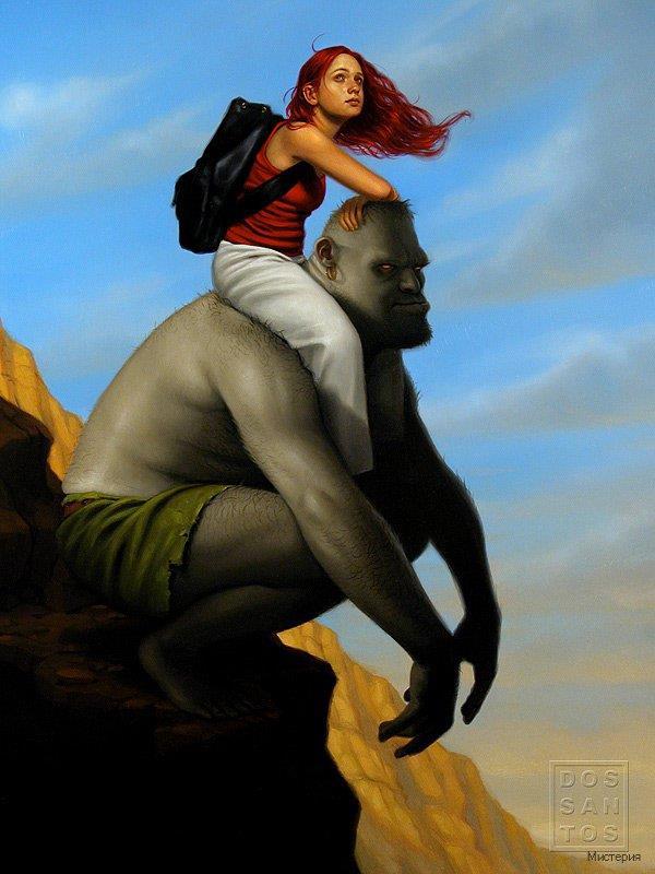 Мастер живописи маслом, качественной иллюстрации и фантастического рисунка Dan dos Santos. С детства был увлечён комиксами, занимался созданием героев комиксов, отсюда, наверное, особая красочность и энергетика во всех его картинах. Среди компаний, на которые работал Дэн Дос Сантос, такие мировые имена, как: Disney, Universal Studios, Boeing Aircraft, Saatchi & Saatchi, Scholastic Books, The Greenwich Workshop, Penguin Books, Random House, Tor books, UpperDeck, Wizards of the Coast и DC Comics. Кроме комиксов художник занимается оформлением книг, как мы видим по тематике, фэнтезийного и фантастического жанра и просто рисует картины.